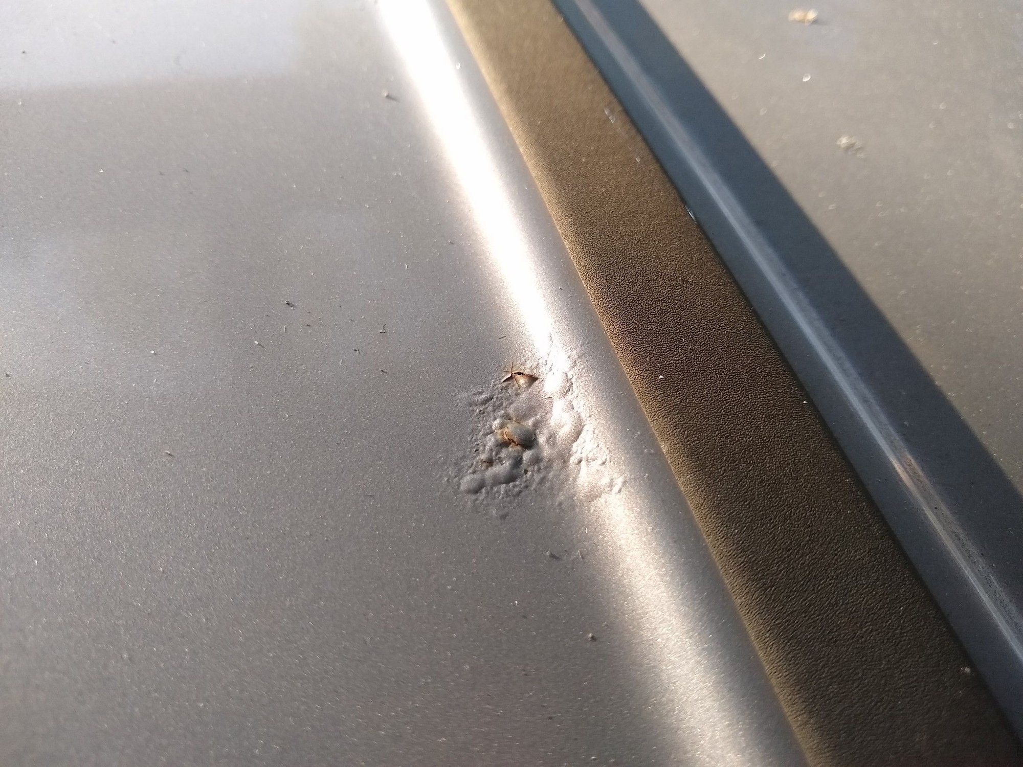 Well looks like my next project will be doing body work which I have not done since the 80's on my 67 stang I had. Getting up supplies now and be buying the gravity feed spot blaster gun from HF to help in those hard to get area. The rocker on passenger side that I know someone has patched with bondo don't know if that was due to rust or a dent but I figure rust no pic of it as all you see is a spot of bondo cracked. Roof has a couple spot of paint bubbling due to rust not big maybe dime size. Lower quarters both sides rusted believe drivers will be worse as can see it bubbling past the fender flare well just going to cut and weld and will be the last thing I fix. Only one that really concerns me ..well guess actually two... is the rust in the gutters and the rust on back rocker on divers side along the seam. Small rust spot on top of hood and one spot of rust on edge of drivers fender right where the A piller comes down next to the windshield. Oh did not take a pic of the gutter on passenger side but pretty much surface rust all the way down it, I poked it with a scribe and found now rust thru's. lower quarter panel rusted see it bubbling thru paint also see the rust I know its rust thru same way on other side also. rust along bottom of door rust along seam of drivers rear rocker panel Another pic of rust along the bottom of door Gutter rust divers side looks like a hole but its not small spot on hood rust spot on roof rust spot on drivers fender