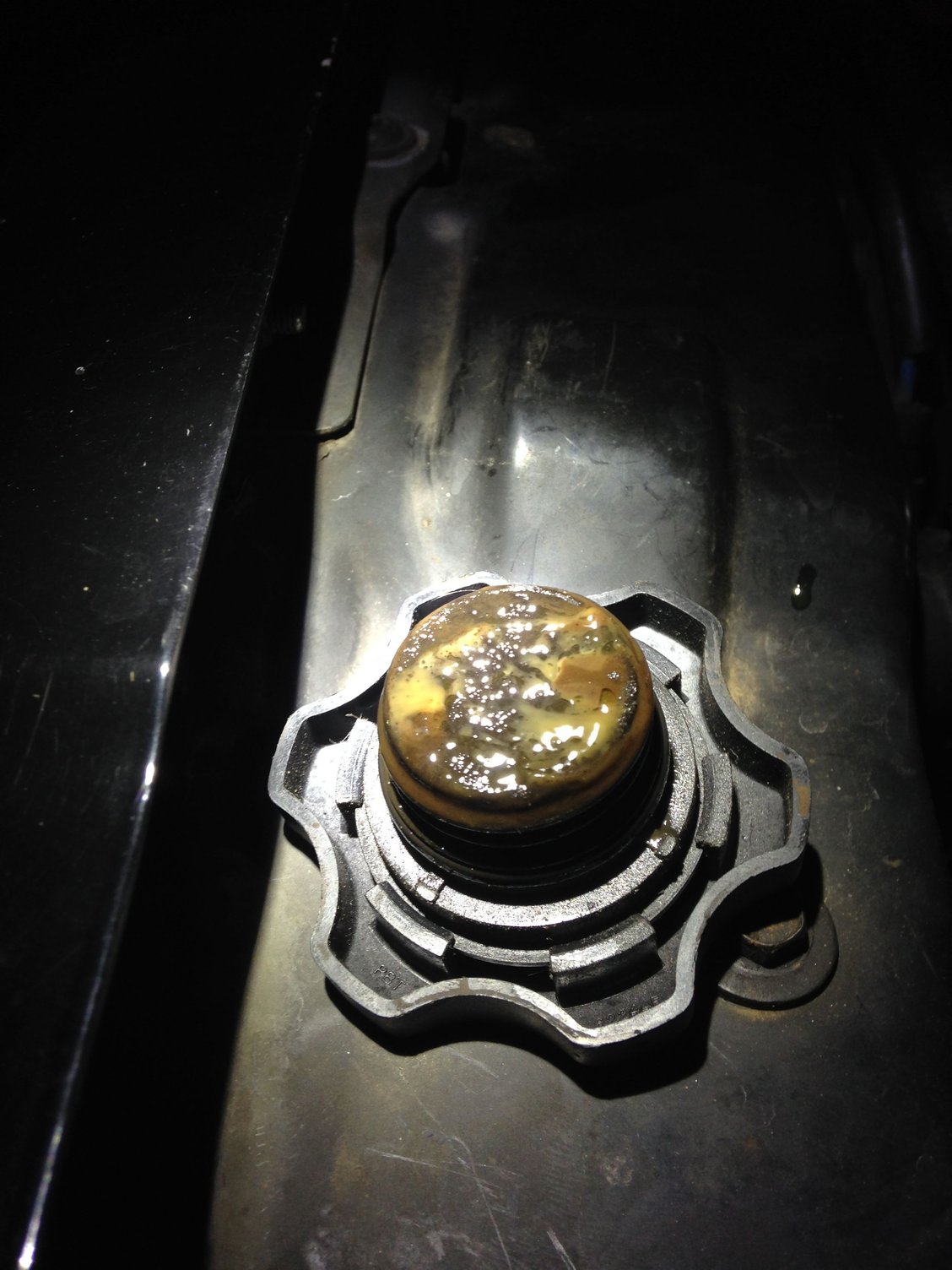 Okay, so last night I was at McDonald's sitting in the parking lot for about 30 minutes while the jeep was running, then when I pulled up to get my food it just out of nowhere has such a horrific misfire, like it sounded like it was going on 2 cylinders maybe, and then I pulled out onto the road and it did the same thing but I the throttle some fines and after about 30 seconds it cleared up... Before I went to McDonald's I did put some gas in it because it was almost on empty, and this morning I went to inspect and I noticed a petroleum jelly like substance on my oil filler cap... I don't really know what is going on here. My first initial guess is I bought some bad watery gas but I'm uncertain at this point. The coolant was low but that's because I recently did a complete flush and I am still letting the system bleed. Any ideas what's happening?