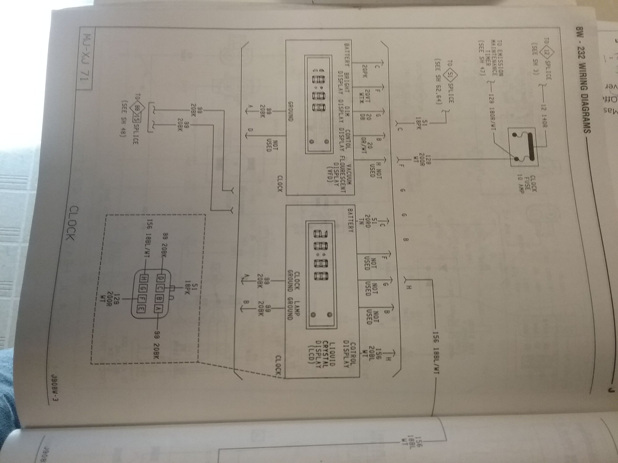 Page 8E7 the number two photo I posted shows Clock H and D terminals are for clock lighting, the LCD display needs light to see it well. check those for power.