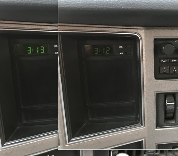 Honestly, I can't easily ready the clock in my '88 in the bright daylight unless I'm sitting under a tree or in a building shadow. I still have the factory radio with clock and can read that one easily. The dash clock illuminates at one level with the lights off, then dims a bit with lights on.