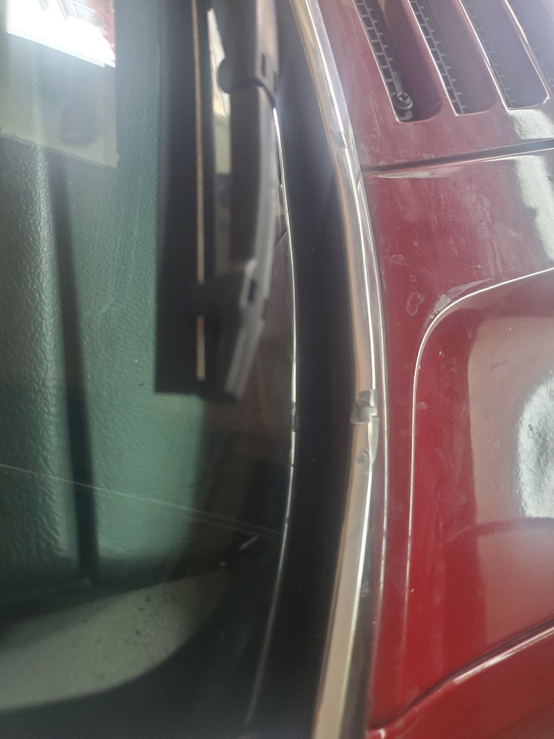 Hi guys, a few days ago I had my windshield replaced on a 1992 laredo with chrome windshield trim. On the left side of the windshield (see photos), the windshield is pressed in too much, leaving like a 3/8 gap between the windshield and the trim. Will this make water collect between and cause a rust issue?