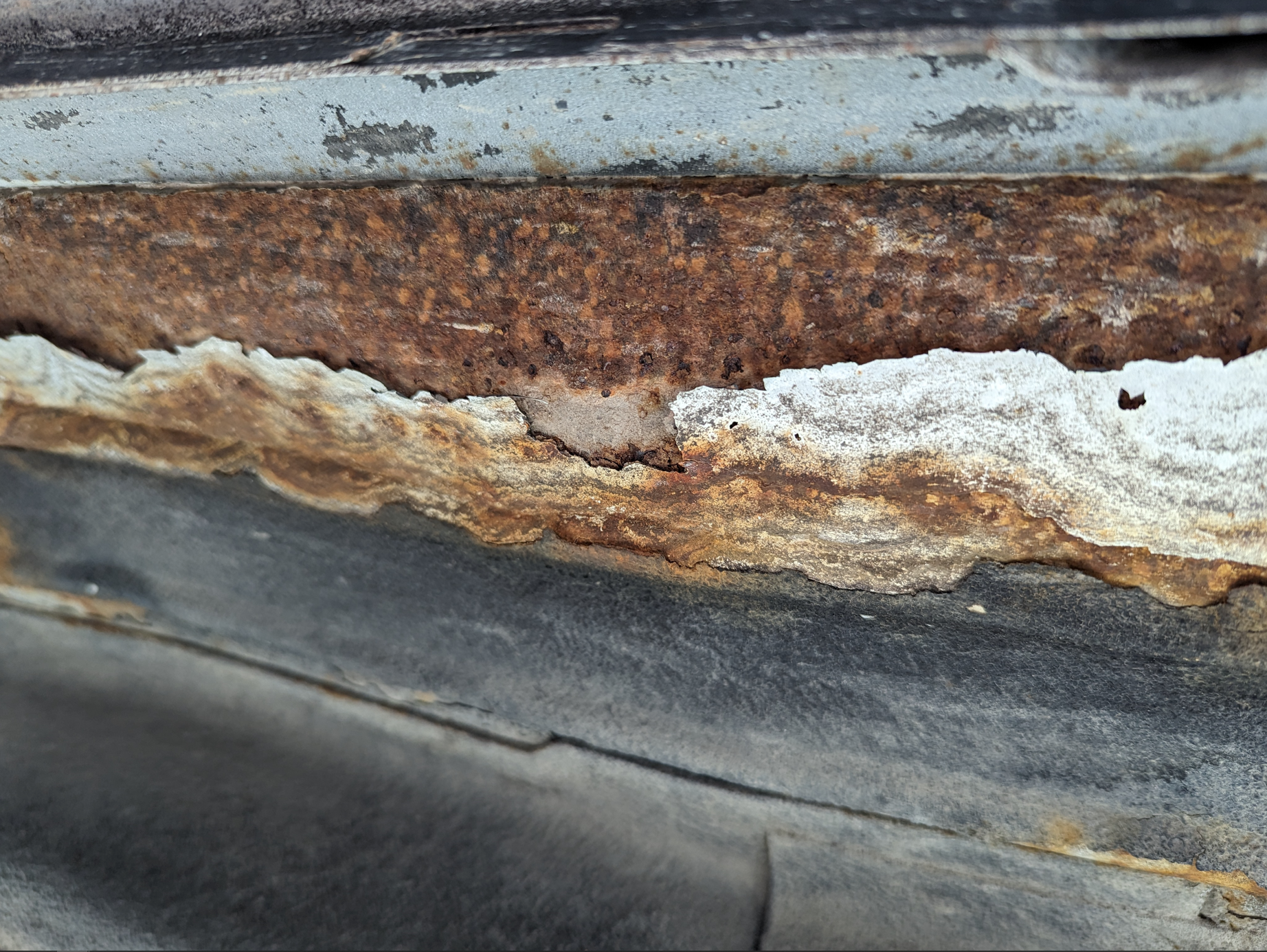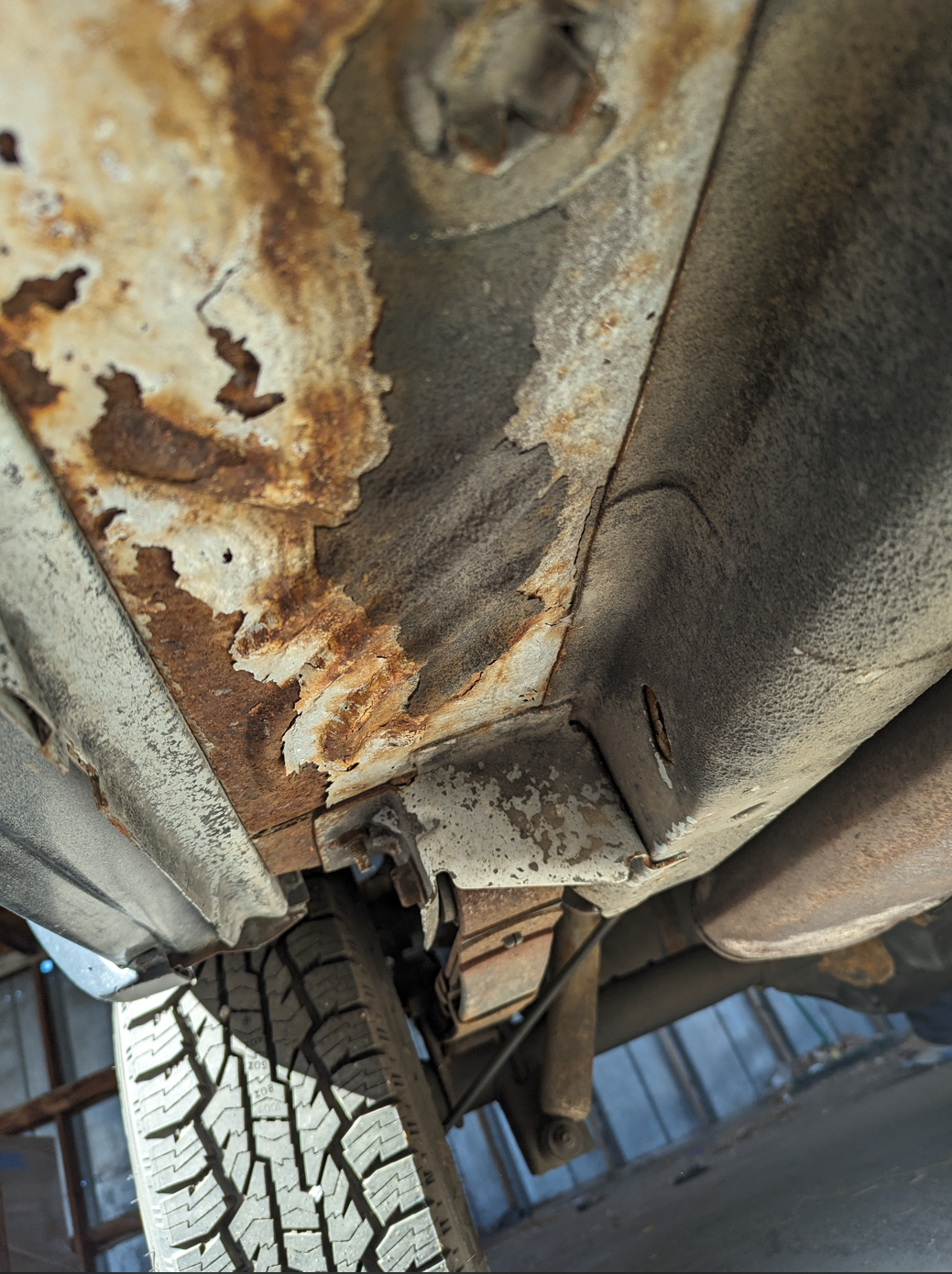 I got this thing home and examined it a bit closer. The driver side looks a lot better and the stuff on the passenger side beyond the rot behind the rear wheel seems surface. I will start cleaning it up with some wire wheels and will see how that goes.