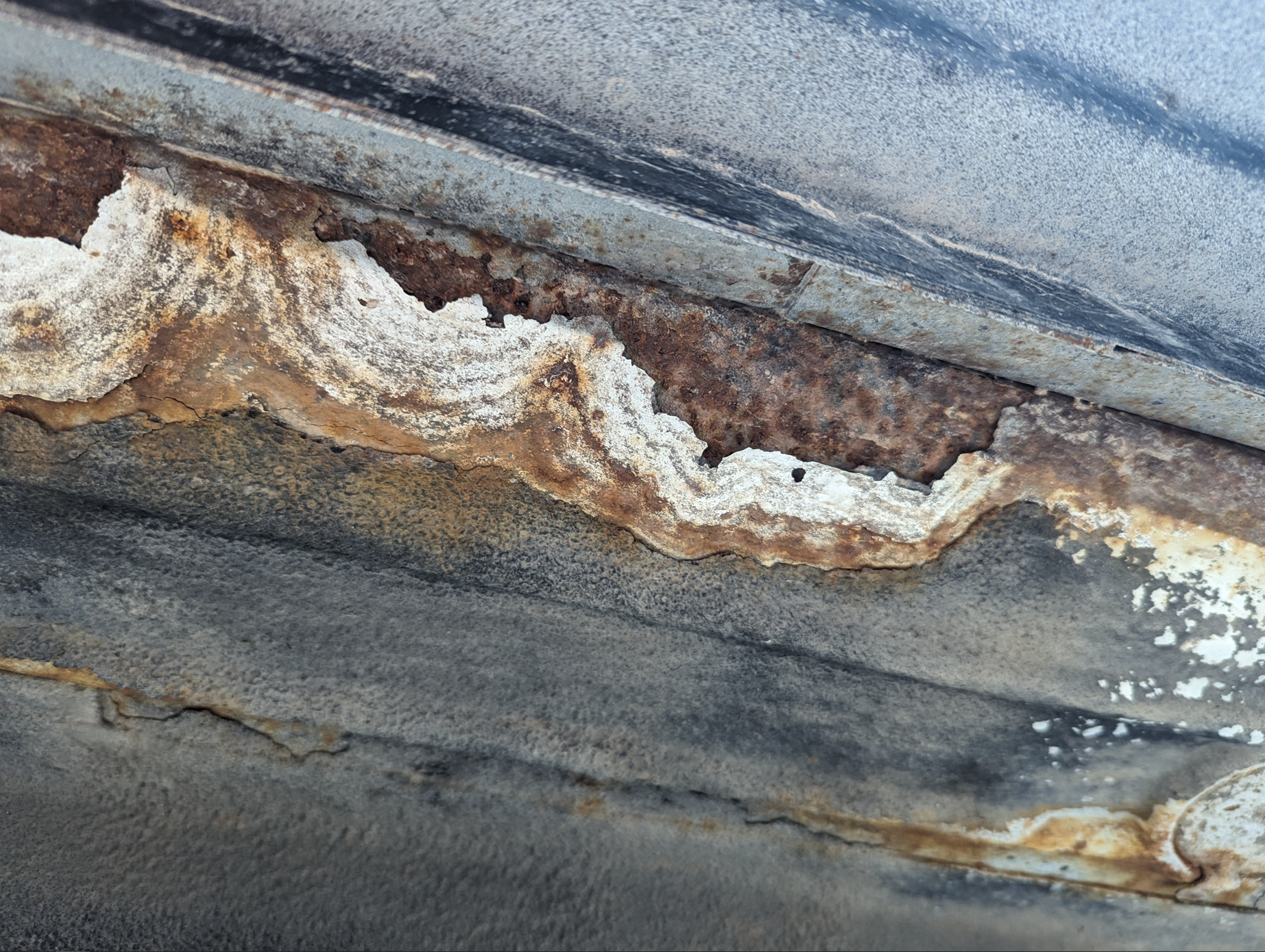 if upon rust removal you expose large holes, or big areas of swiss cheese like pin holes, then a patch can be made. patch can be riveted in place, edges sealed with a urethane sealer, and painted.