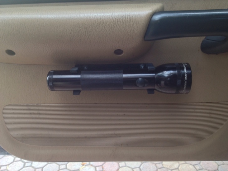 Zanderman111 is one of the few 3D printers I have seen come across this forum. Recently, he came up with a Mag Light holder that will hold the 2D an 3D models. Instead of the current holders on the market that are a two piece design. The one Zandermann111 puts out is a one piece model that has the ability to put your own lettering on the inside. I got the first one to help test out and find out where to install. After brainstorming for a minute, I decided on mounting on the driver side door horizontally due to the fact that these 2D/3D lights can act not only as a torch, but a self-defense tool should the situation get sticky enough. When the door is closed, the torch is hidden and is easily accessible by the driver. Let's get started: