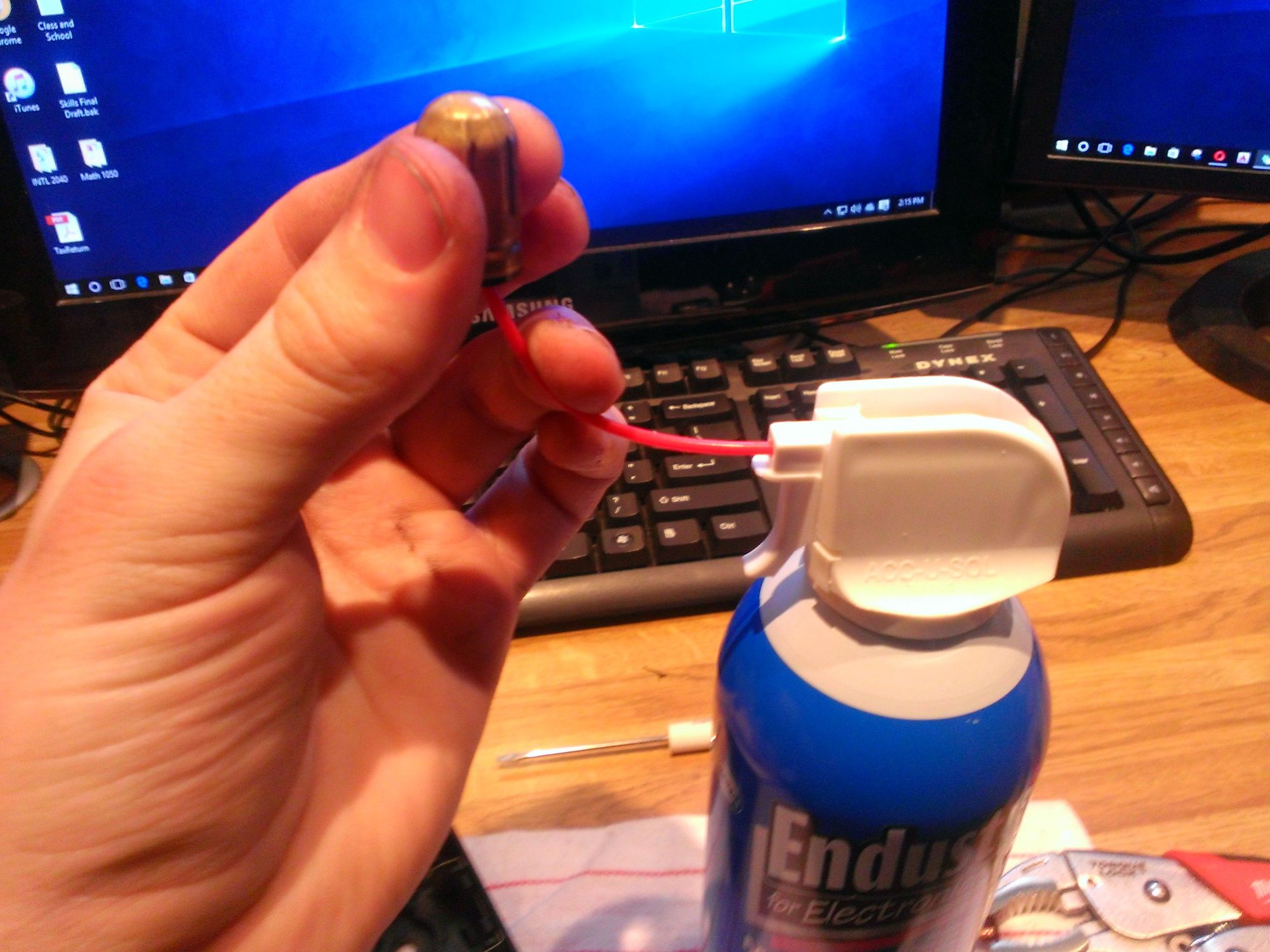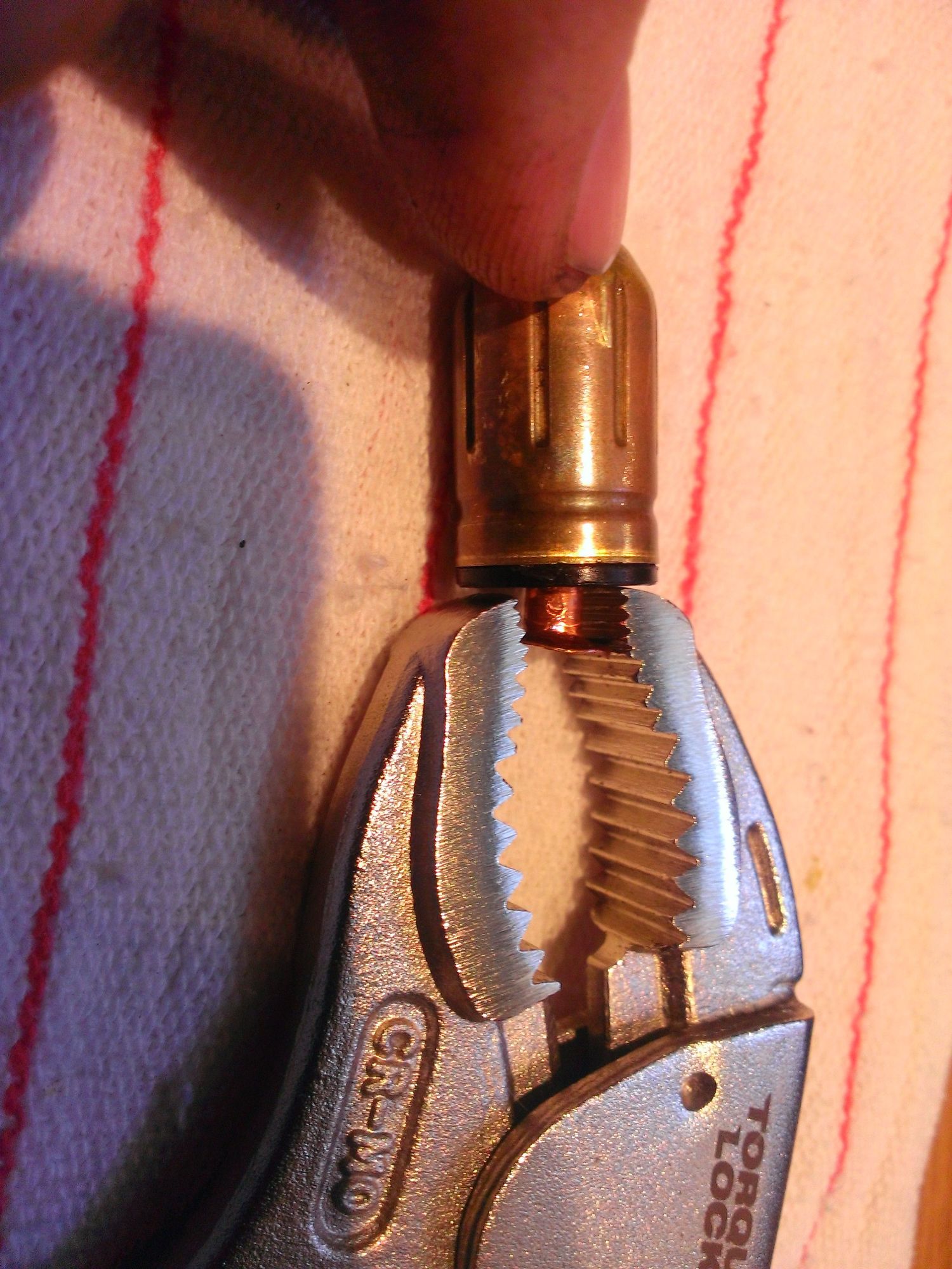 To clean the interior of the switch you will need: small flat screwdriver, pliers, razor blade, 10 mm socket(not pictured), volt meter, WD40 and canned air. https://cimg8.ibsrv.net/gimg/www.che...8ea66cbf07.jpg To start, unplug the light, take off the cover, then remove bulb and 10 mm bolt. https://cimg9.ibsrv.net/gimg/www.che...862a82c4c7.jpg The switch is the small bullet shaped brass piece with a copper pin inserted in the plastic cap on the bottom. Inside is a steel ball. When tipped into an upright position the ball contacts the side of the brass chamber and the copper pin, closing the circuit. Mine was corroded internally. Pry up the switch from the top to remove. https://cimg8.ibsrv.net/gimg/www.che...32a52fdc47.jpg Using a razor edge and a flat screwdriver the copper pin can be pulled out partially, then removed with pliers. https://cimg2.ibsrv.net/gimg/www.che...a50b4a4209.jpg https://cimg3.ibsrv.net/gimg/www.che...5ae633625b.jpg https://cimg4.ibsrv.net/gimg/www.che...028ef594e5.jpg Couldn't get a good picture of the ball inside. https://cimg8.ibsrv.net/gimg/www.che...04c5f18155.jpg Kind of dirty, pic was taken in the middle of cleaning. WD40 is probably not the best cleaning agent, it's what I had on hand and did the trick. https://cimg5.ibsrv.net/gimg/www.che...a61016309a.jpg Blast the residue out with canned air. I bent the nozzle up and held a shop towel around the bottom, there was a lot of fluid inside. https://cimg4.ibsrv.net/gimg/www.che...d56936fb3a.jpg Replace copper pin and put switch back in the housing. Check for continuity with ball in the bottom of the chamber. (Clean again if necessary) Reinstall. https://cimg0.ibsrv.net/gimg/www.che...ec8ba98be3.jpg Zero Ohms means it's good to go. https://cimg2.ibsrv.net/gimg/www.che...de57468949.jpg https://cimg4.ibsrv.net/gimg/www.che...185ffe664f.jpg |