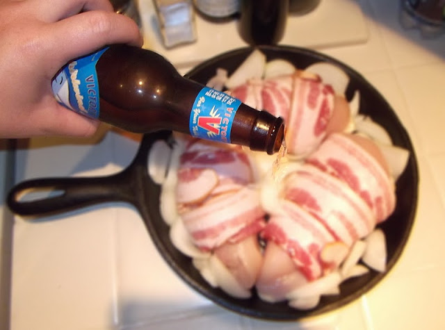 But i can redeem myself by posting BACON wrapped BREAST (chicken) in BEER ...