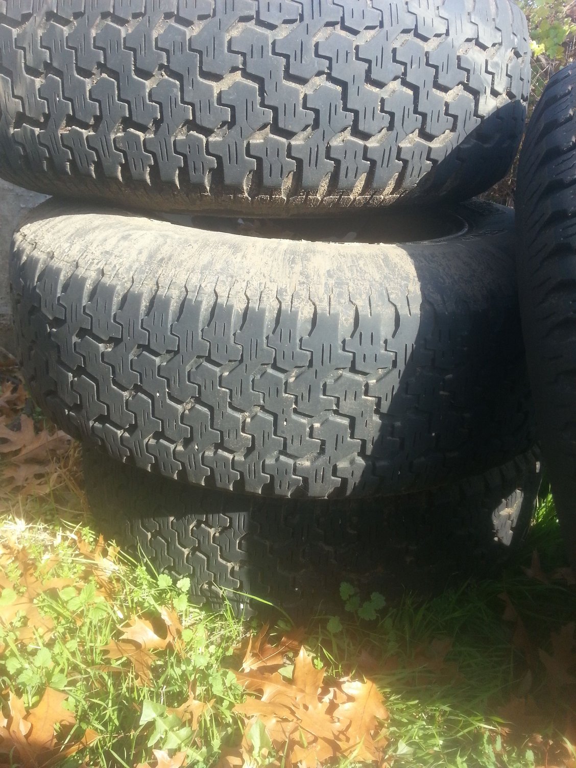 I have an old set of tires and wheels im not using anymore. I think the wheels are off a tj (5x4.5 bolt pattern) and the tires are goodyear wrangler radials (235/75/r15). 2 are basically new. one does have a plug in it. the tires aren't great but will get you home. they're just taking up space. someone make me an offer. im asking $150