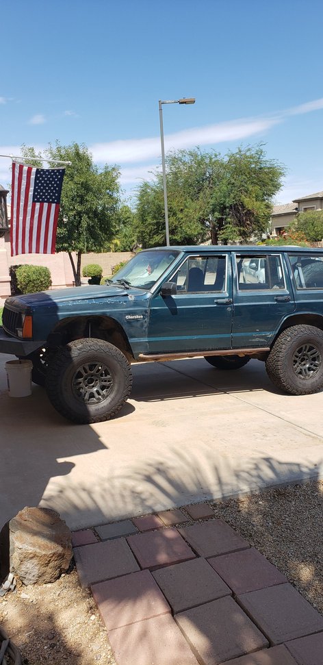 I ended up using it a little as it was starting to get hot in Phoenix and the a/c didnt work very well. I used it only when it was cool and ended up changing the plugs, cap and rotor and 6 new plugs. I also changed the oil and filter, water pump, t-stat and radiator. I saw a work up on how to add a trans cooler and did that too. I then cut the fenders and added more lift with some 33's. It was great like that. I took it rock crawling to spots like Payette Draw, Box Canyon, Terminator and desert driving everywhere else. I even took it to the Spook Rally a few times. It wasnt bad ass just bad ass for me and I got to see places I had never before and was with my friends. Then everyone quit crawling and I was all alone. I joined some local clubs but it wasnt the same. I sat on it in the same condition adding little things here and there. Until recently I met some people who were like me and wanted to see and explore Arizona. We were taking our kids sledding up to 4 Peaks and ran into a big crowded road full of vehicles that couldnt make it up any further. My buddy and his new JL were in tow and we went around everyone. The snow here is like gold, gotta go check it out. Up to 12" at the top and the kids loved it. In meeting my new crew I got re-inspired to work on the XJ and make changes. In the 10 years of owning this Jeep I only put 20k miles on it. First I had to flush the cooling system a few times and took some suggestions from you guys on this forum. I purchased a new exhaust man as mine is cracked and sending it out to get Jet Hot coated. This coating is supposed to reduce the temps from the exh. manifold significantly. Once I get that installed, I will work on these next items: gas tank (mine is dented from coming off a rock) skid plate (probably from the JY) oil filter mount is leaking so I will get those o rings. I saw a guy who installed a kit on this mount that had a line going to an external oil cooler somewhere in the engine bay and back to the engine. It doesnt leak really bad but enough that I need an oil pan on the driveway, I just use a board. These next items arent necessarily needed but on a wish list. Any help here would be great. RC Long arm 4-6" long arm kit Hack n' tap or SYE - I dont believe the case has ever been opened, should the chain be checked since I have 155k miles now. If it gets opened then I will do the sye Will I need new drive shafts? Unibody stiffeners front and middle upgraded durango steering box probably going to keep the hp D30 - it has a lunch box locker w/ stock gears. I'd like to make a Super 30 like this now for the 8.25. It too has a lunch box locker and I know there arent a lot of aftermarket support for this. I have considered switching to a D44 from a TJ (is that even possible) or just keep costs down and buy the truss and 4340 chromo's. Definitely add disc brakes, gear it and selectable locker. quarter panel protection prerunner flared fenders - I know they dont hold up well with rocks minimize the dents, sand primer and paint beefy rear bumper to match the front. Pics to follow tomorrow on the XJ and my other passion. |
