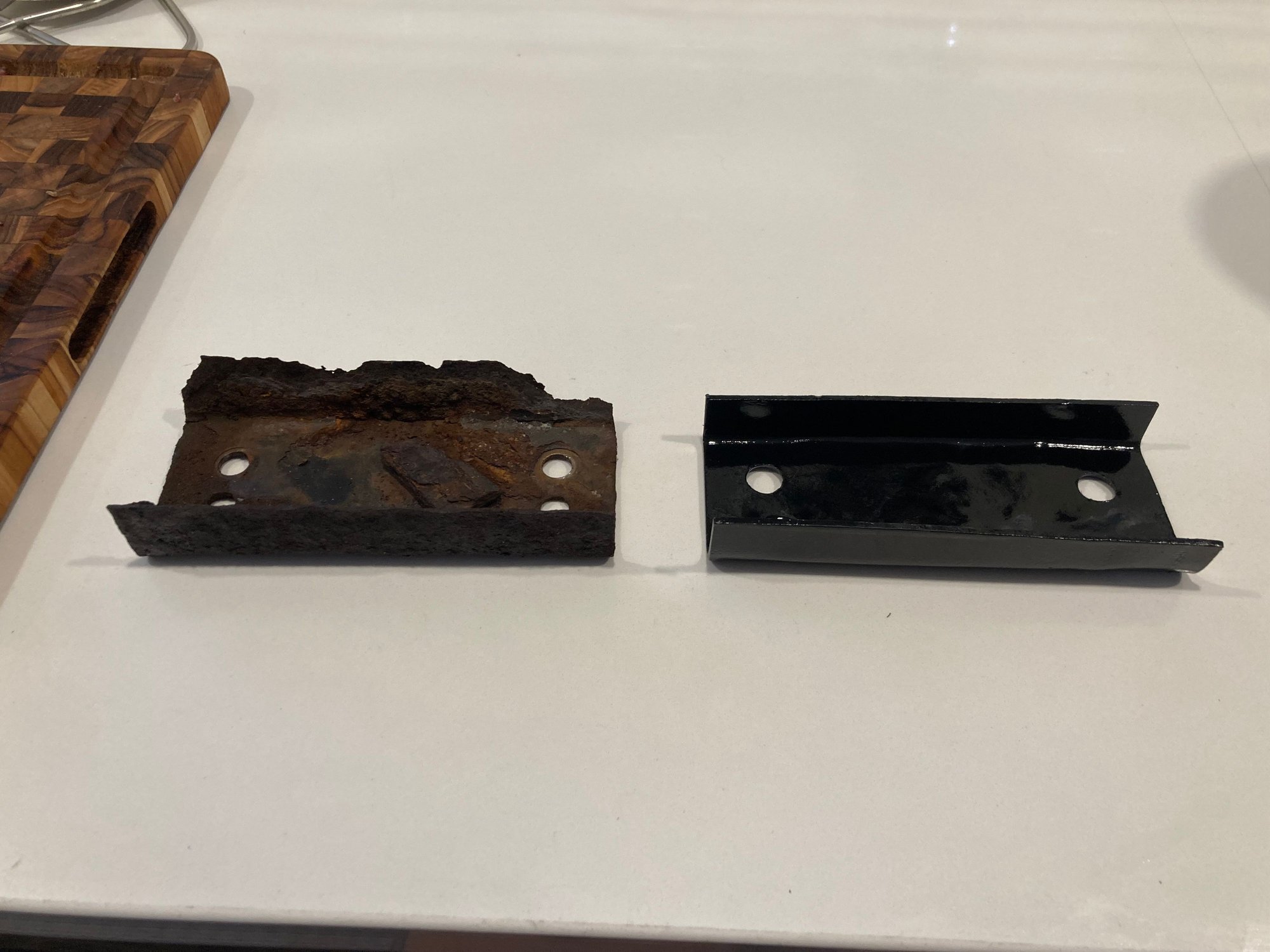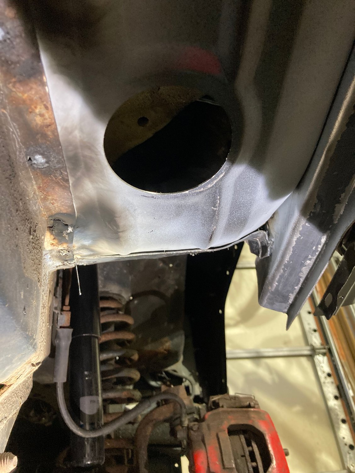Made a new bracket for the driver side bump stop. The old one was pretty bad. The frame was perfect underneath.