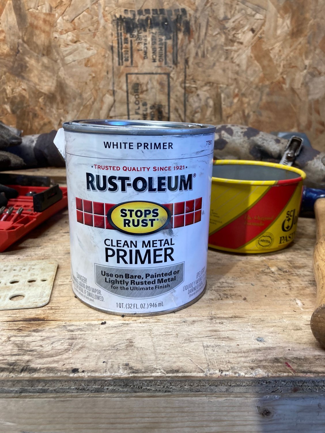 I primed everything I've done so far with Rustoleum clean metal primer. I used brush-on because I really want this to last. They only sell it in white, but I had it tinted.