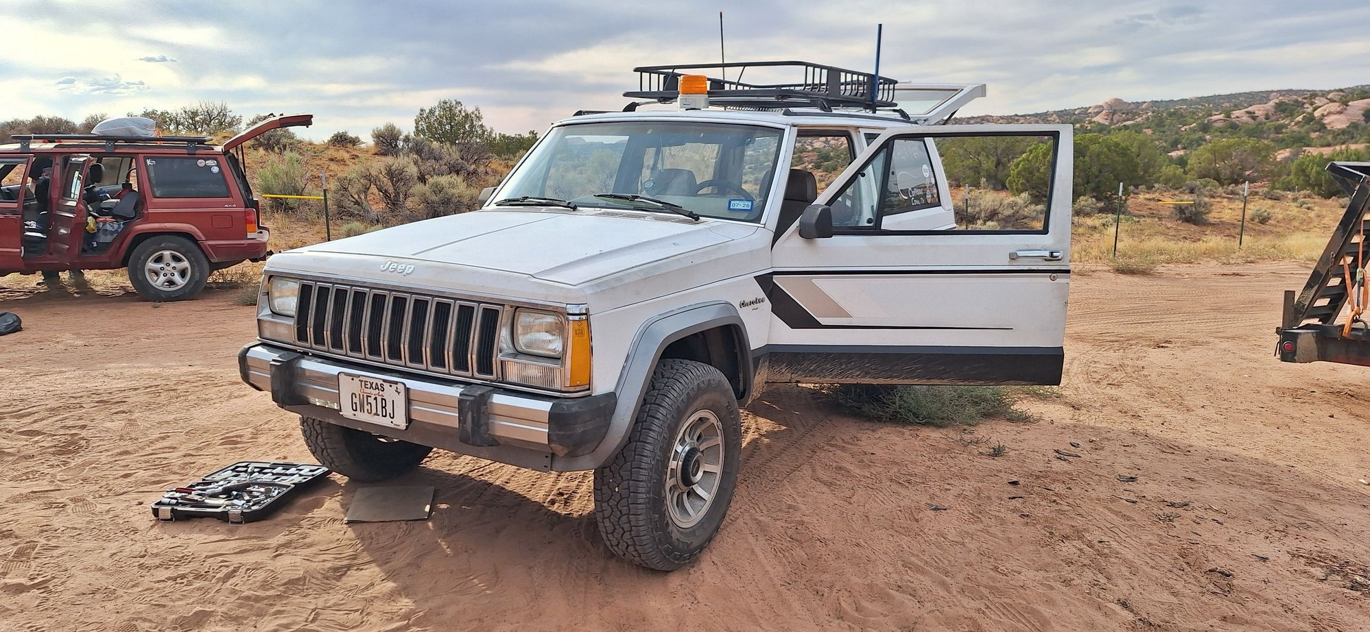 Took another trip to Moab with absolutely no issues this time! We installed a manual steering box from an 86 comanche and the steering is so much lighter now. Feels like I have power steering on the highway. Also got a chrome bumper from a friend while there so now the front end looks complete and not such a mess.