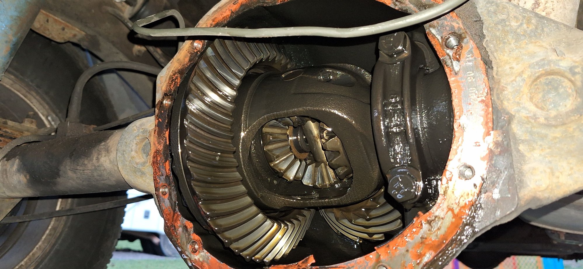 Decided to replace the fluid in the rear differential since it was black. Inside looks very good. I could service the front but it leaks from the passenger axle seal so im topping it off every 2k miles anyways so its fiiiine.