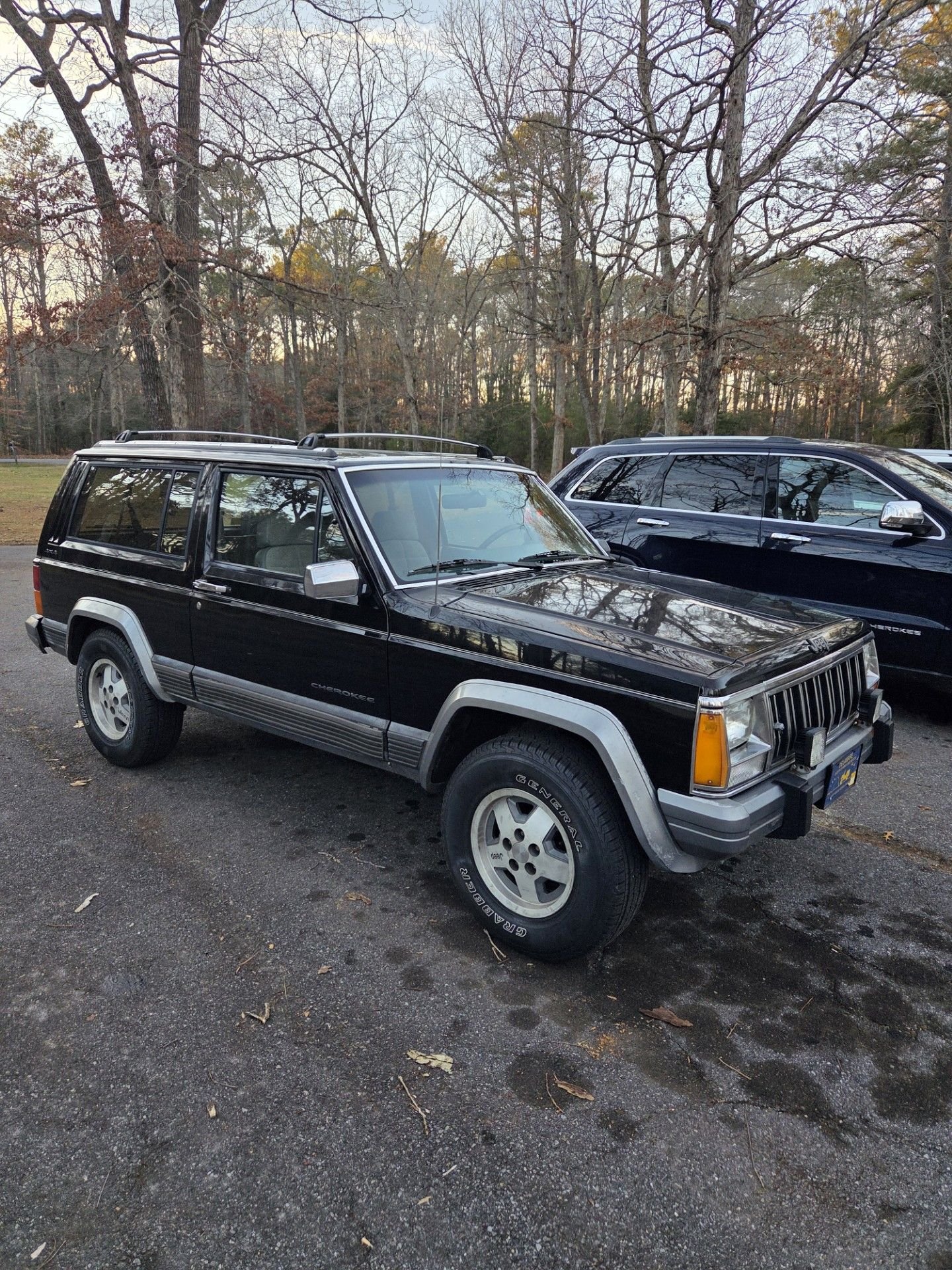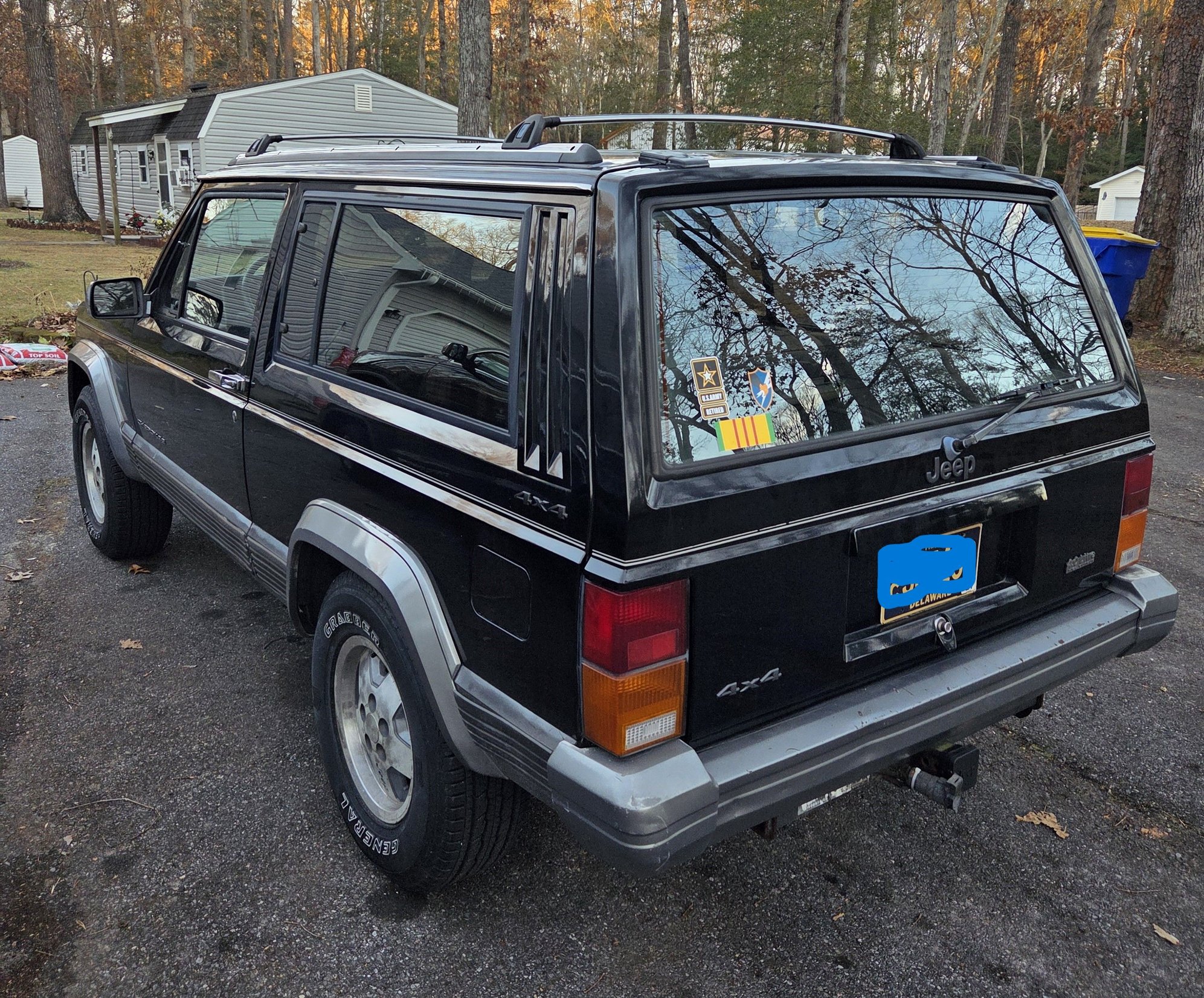 Most options I ever saw on a 2 door. Auto trans, Select trac, Overhead console, AC, power mirrors, Tow package, Cruise, Jensen speaker package, sun visors with illum vanity mirror, remote keyless entry (yes, I have the fob and it works), power windows and locks, Oil cooler, HD engine cooling, Tilt wheel, cargo compartment cover, and power antenna. Has everything but power seats! Had to buy it!