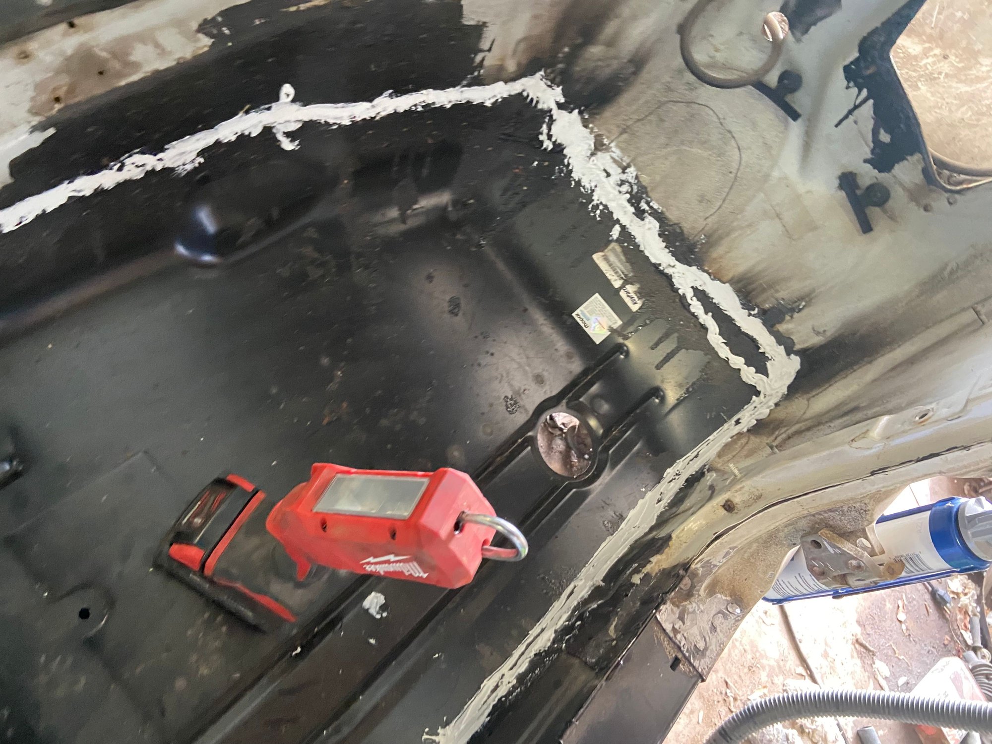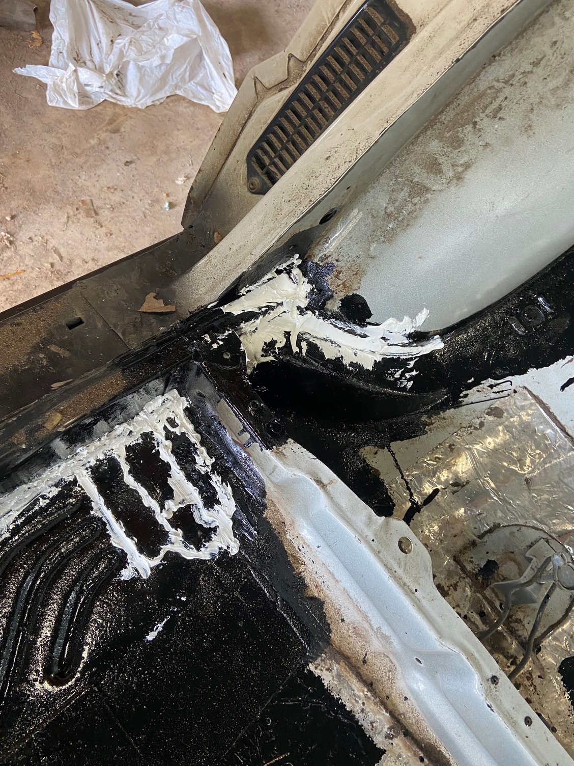 To recap I had removed all the seam sealer along the "lip" where the backer and the floor pan meet to expose the tack welds.