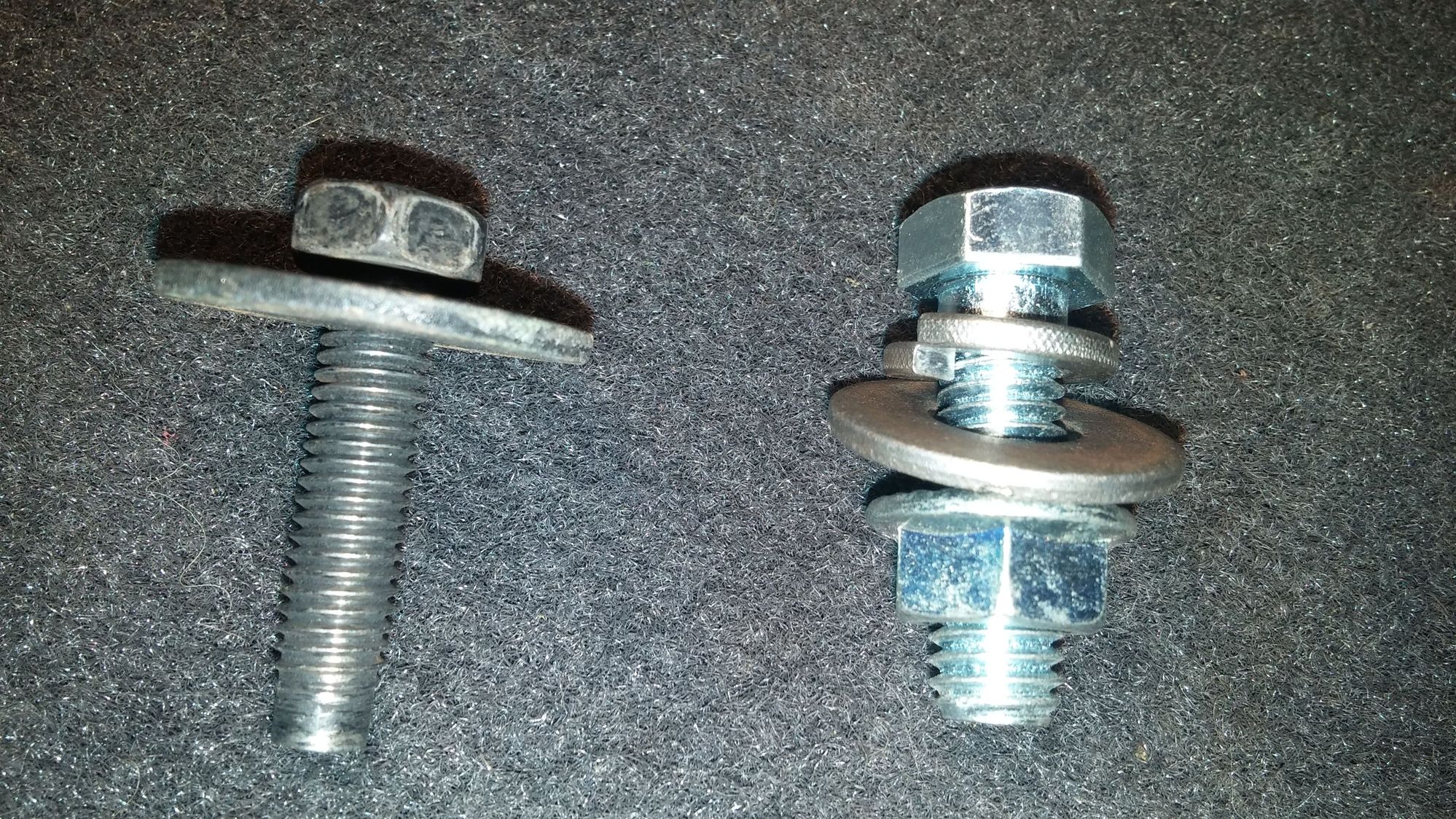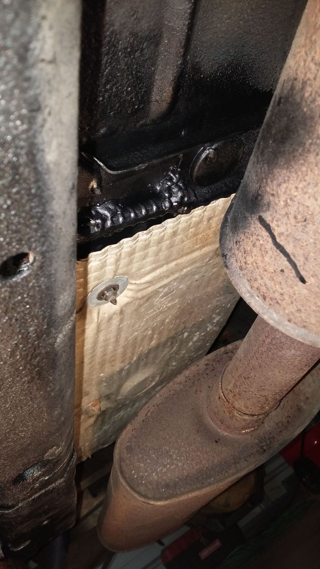 Finished the passenger side floor, painted over the plate I welded in with Rustoleum Rust Reformer and then that same silver paint I used in the engine bay. Underneath I also welded in a piece of rebar for support: https://cimg2.ibsrv.net/gimg/www.che...0729d9aaea.jpg https://cimg4.ibsrv.net/gimg/www.che...570811ef52.jpg A little hard to see with the undercoating on it, but the rebar is the rod looking thing. Welds look ****ty but they're solid. Side note, this heat shield wasn't even on my truck! I happened to be at the junkyard getting some door hinge pieces when I saw this on every other XJ. So I snagged a good condition one for mine. https://cimg0.ibsrv.net/gimg/www.che...5edc866f62.jpg Stops the floor from getting too hot with the muffler right there. Reinstalled the passenger seat and then took out the driver side seat to find this :icon_mad: https://cimg4.ibsrv.net/gimg/www.che...2442eda6dd.jpg More rust, and the seat bracket bolt is broken off in there. This happened before I even owned it. https://cimg8.ibsrv.net/gimg/www.che...c6f3c43b07.jpg Not as bad as the other side, but annoying. Drilled that crap out in short order, going to grind the rust down, paint and replace the bolt with this (old kind on left, new on right): https://cimg4.ibsrv.net/gimg/www.che...15a8c8dc36.jpg https://cimg8.ibsrv.net/gimg/www.che...fd7038127f.jpg On a separate note, I bought some gray paint and painted the bumper ends, but I'm thinking I need a shade or two darker. What do you guys think? https://cimg2.ibsrv.net/gimg/www.che...f03da088bf.jpg |