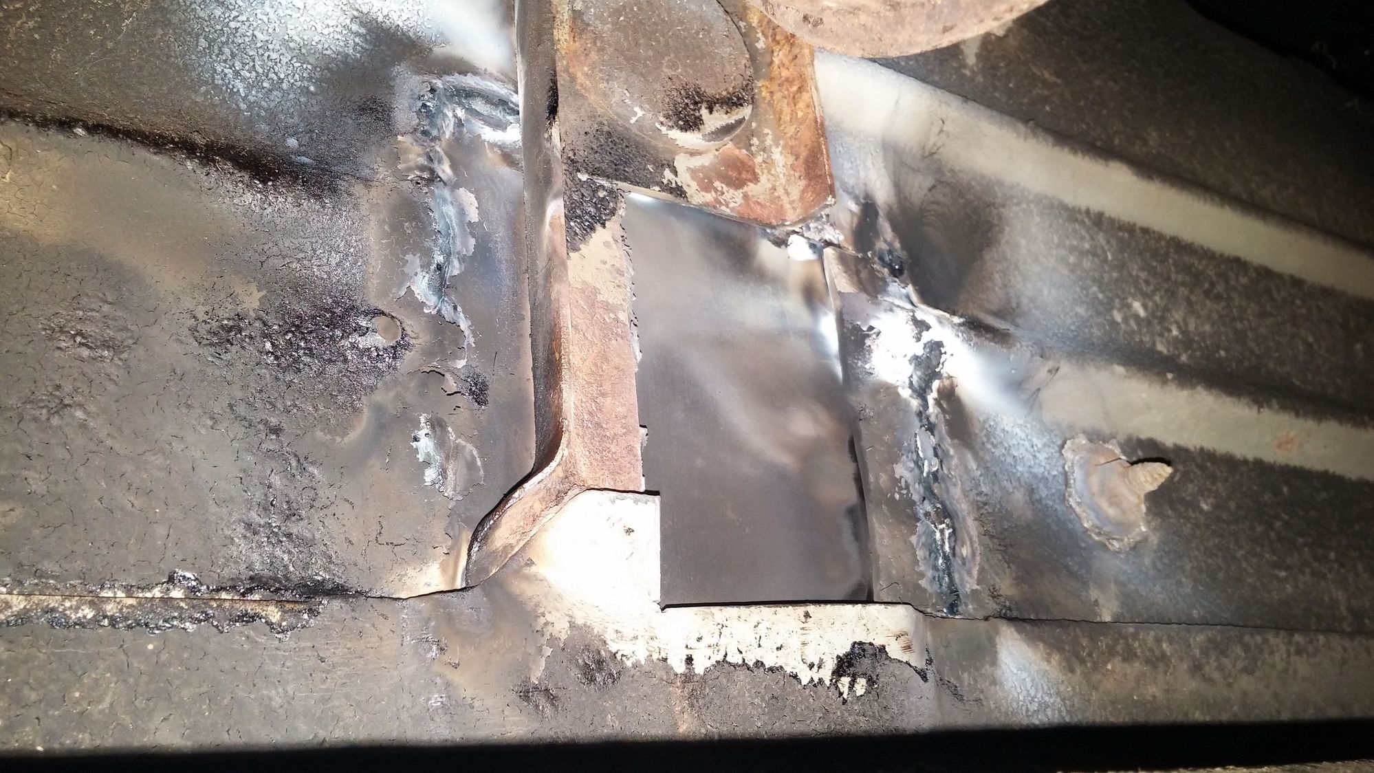 Ok I'm over rust repair on this Jeep. Just finished welding up that big *** hole in my floor with some 1/8" sheet metal.