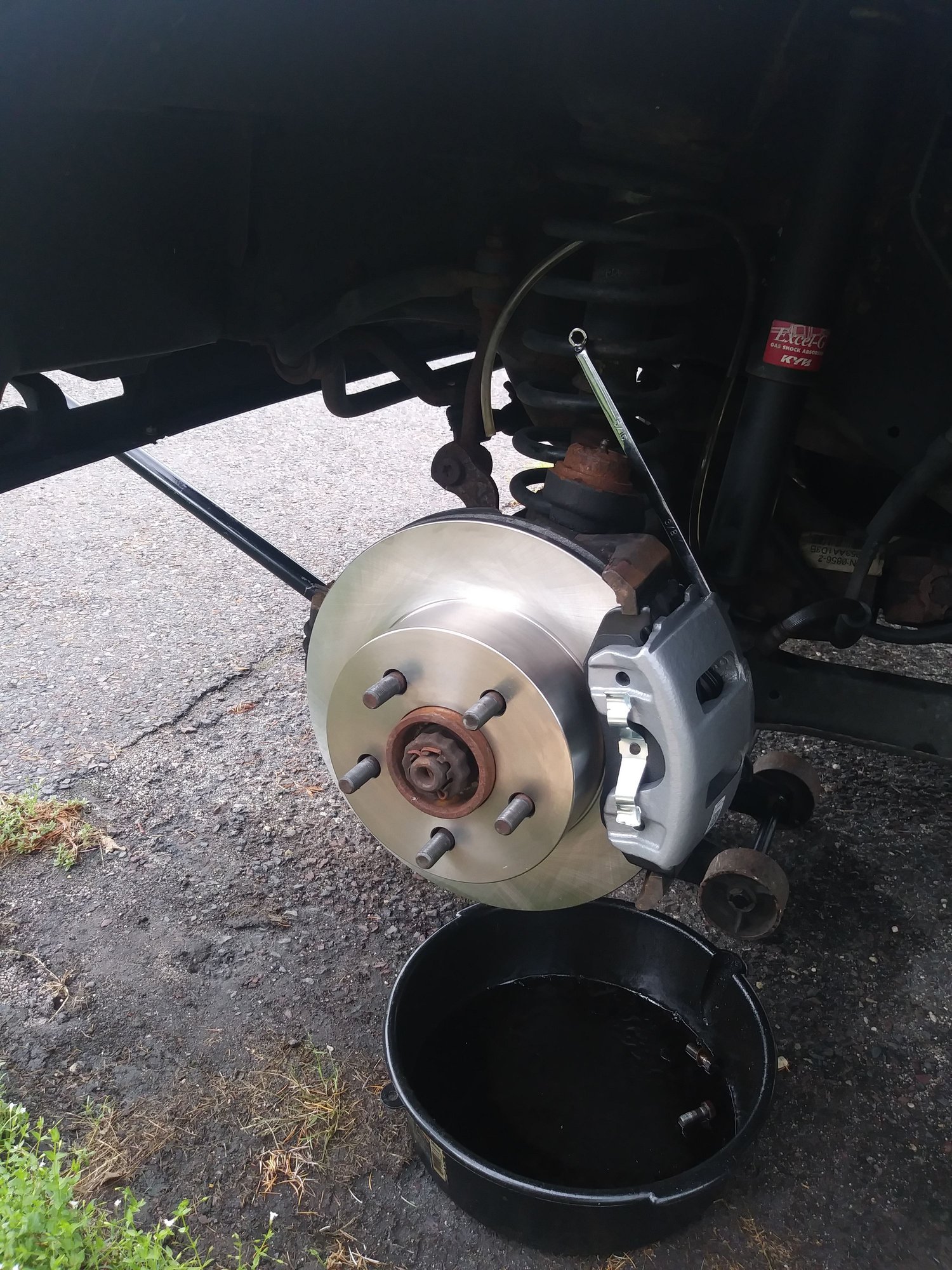 The pads and rotors were shot from not wearing properly (despite being fairly new), so I replaced those. I also bought new calipers because mine were crappy and the pistons were nearly seized in their bores.