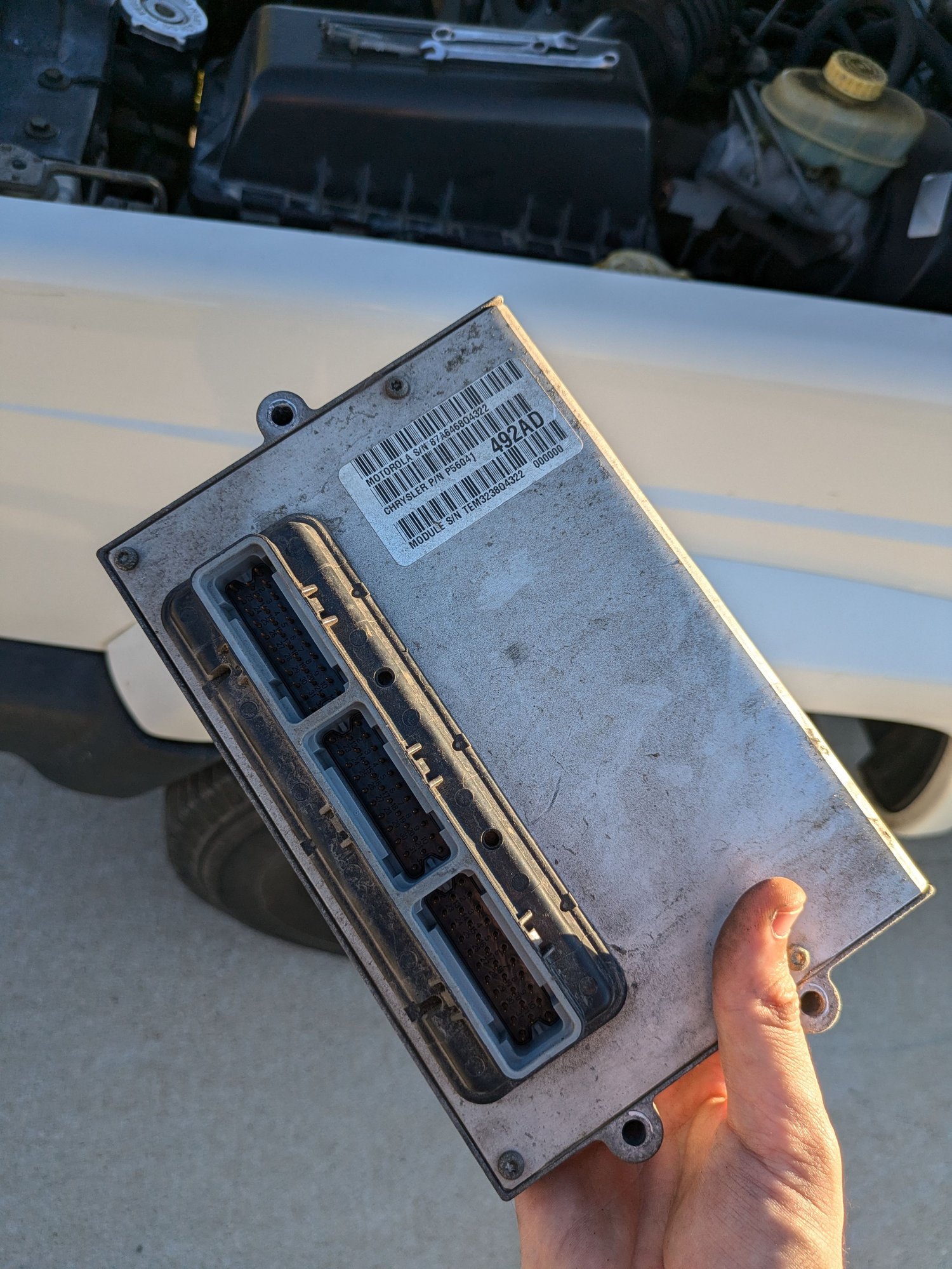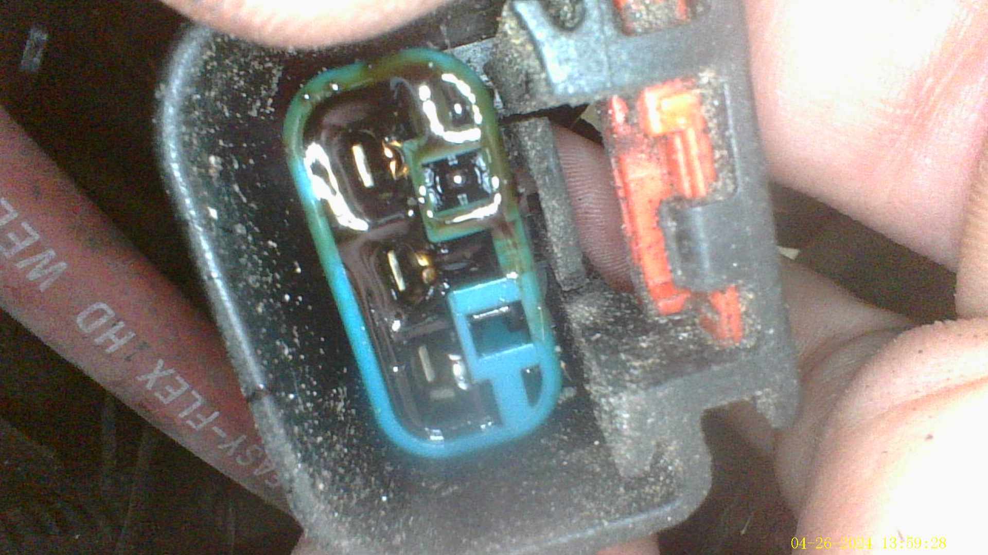 Engine Bay Plug on car harness. Oil inside oil pressure sending unit.