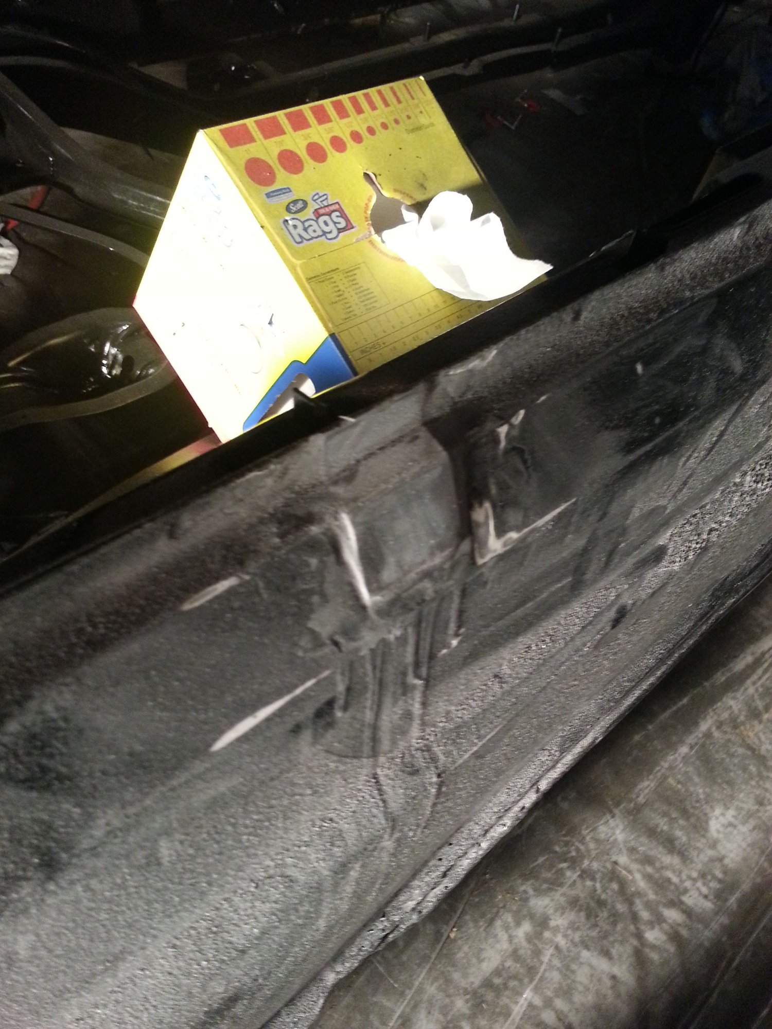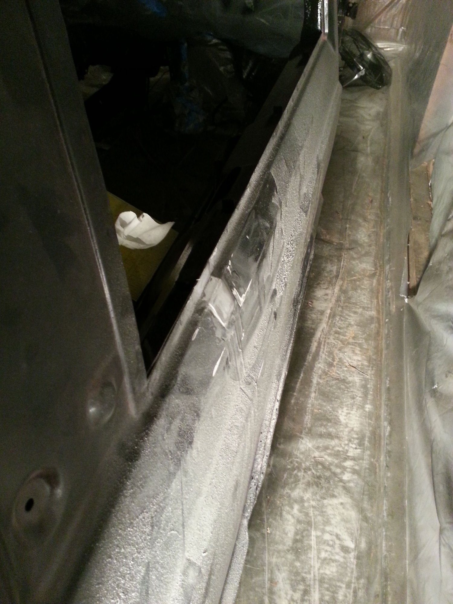 I screwed up by not capping the adhesive prior to doing the rocker. Had to take it all off and use a new tube. Apparently you cannot leave it exposed to air even though it is 2 part. Had to redo the whole rocker again. Smoothing everything out.