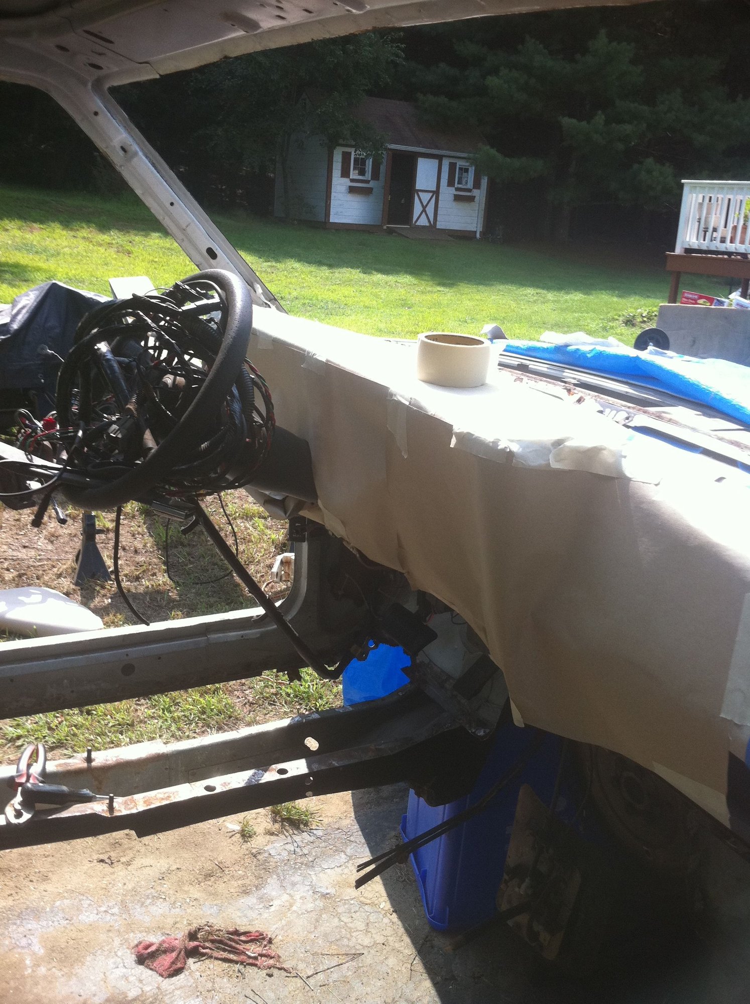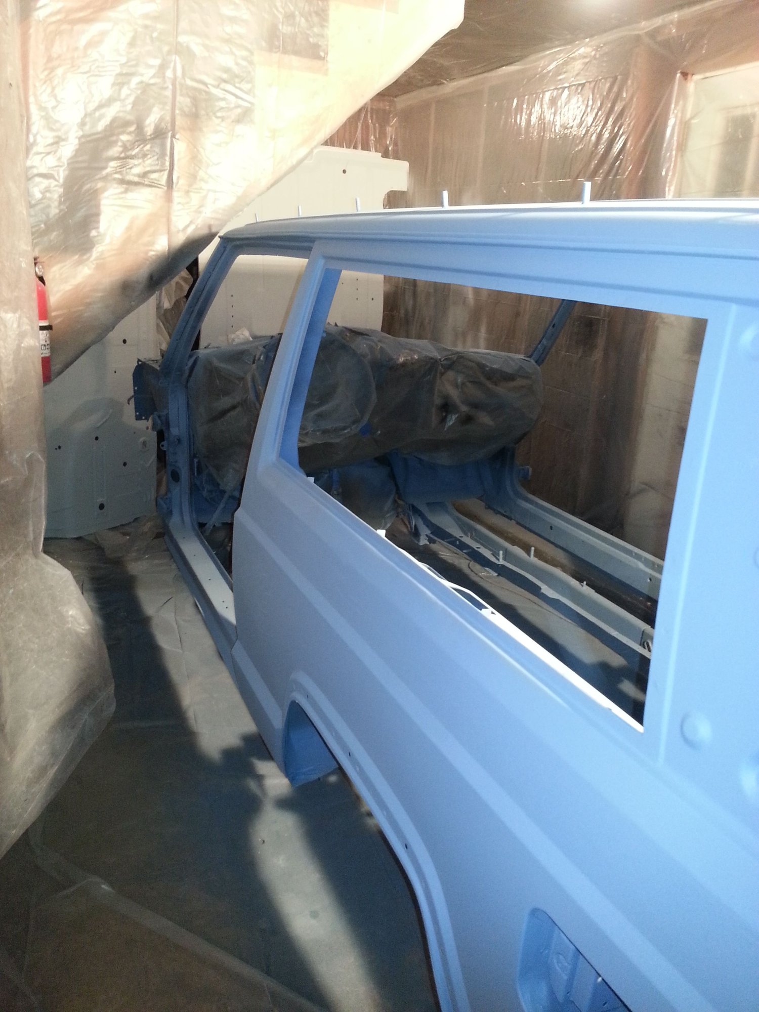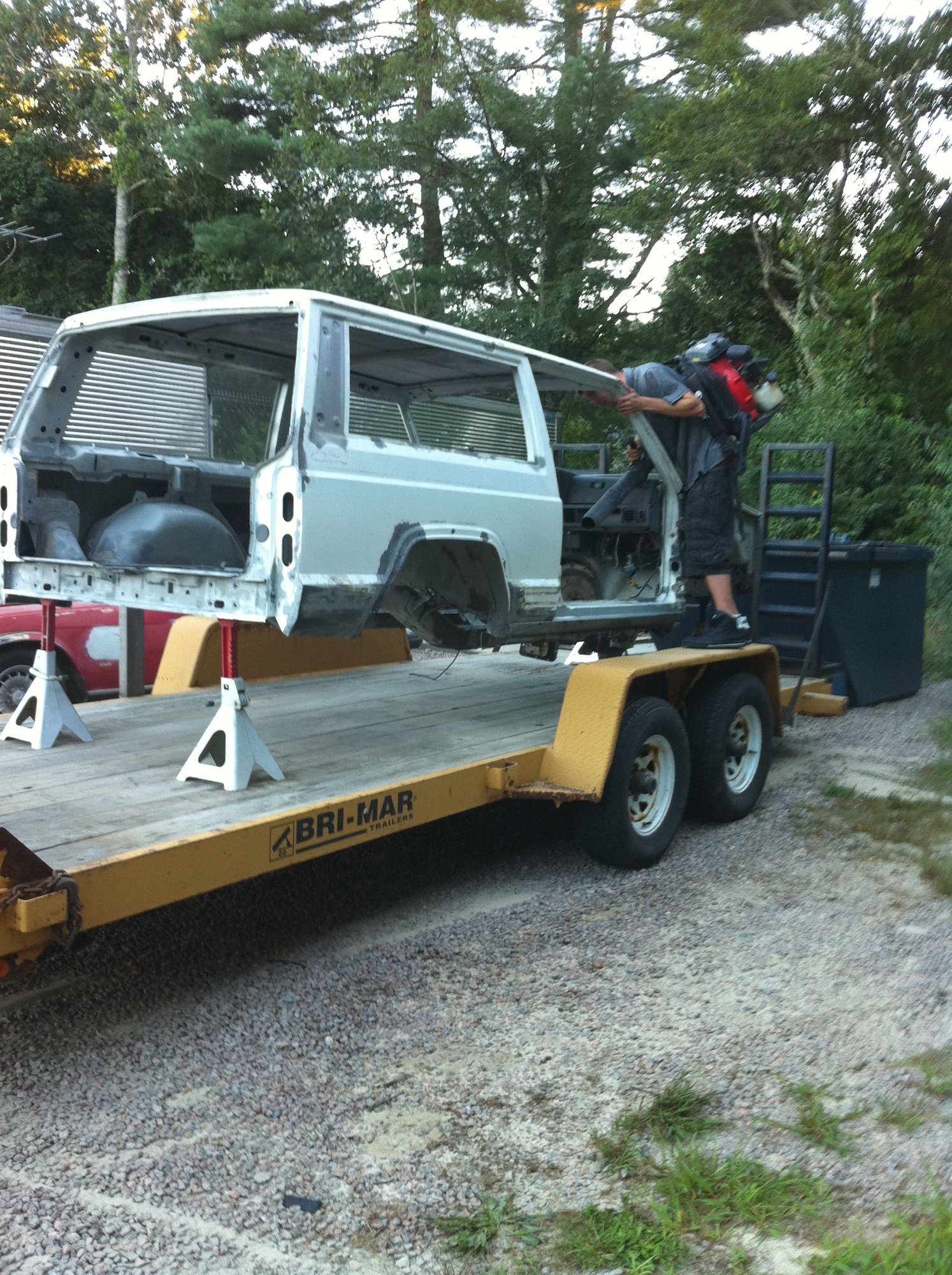 At this point a couple good friends helped me out a lot. One offered to let me use his automotive shop compressor to run a rented media blaster. The other offered his garage to let me get some paint on it.