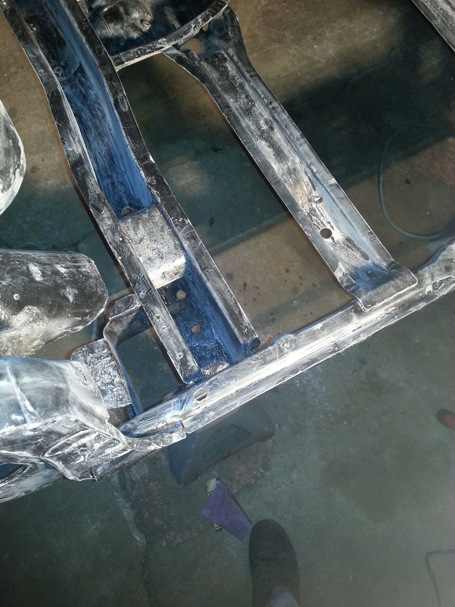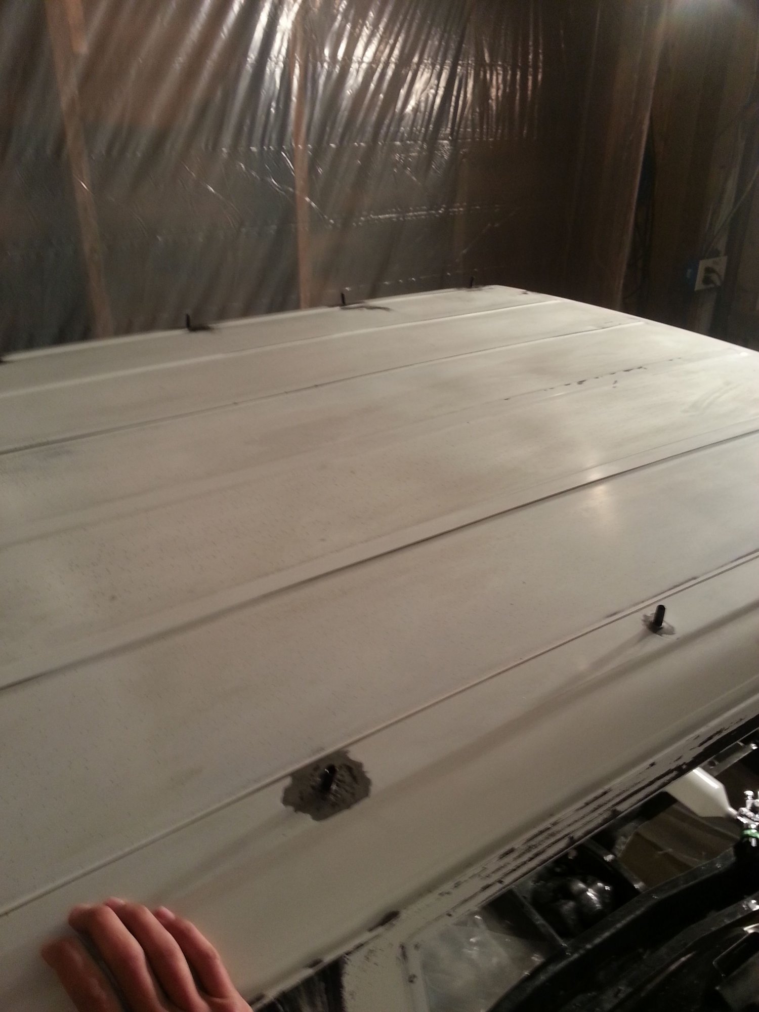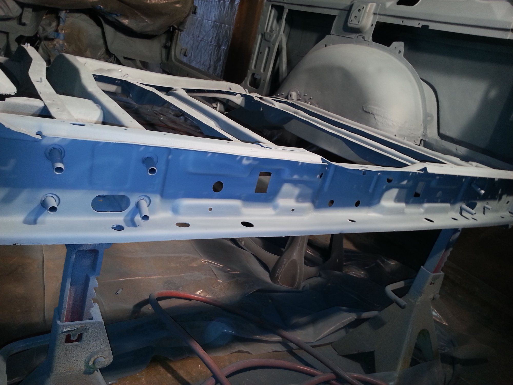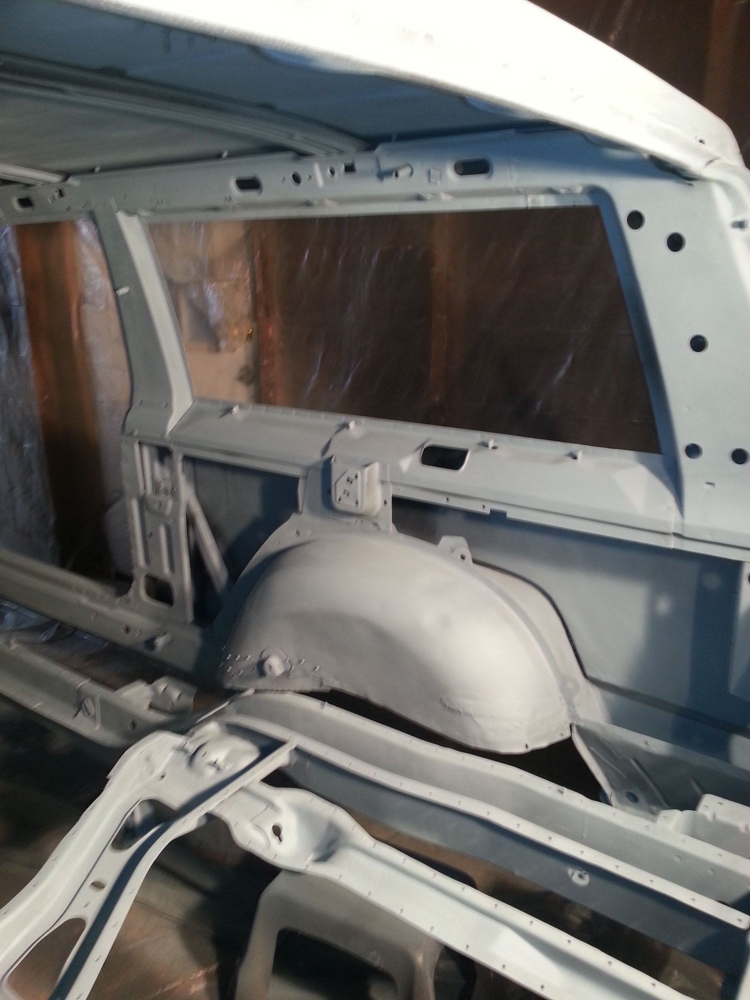Let the scuffing begin. Im pretty sure at this point I also sprayed all the bare metal down with POR15 acid etch to prep and seal it. Let the scuffing begin. Got hours of help from a mate who helped me scuff literally every inch of the body and underside. Was such a massive help. I had tried to get POR15 sprayed right after sandblasting but ran out of time. Ended up having to scuff everything I sprayed so the next coat would bond.