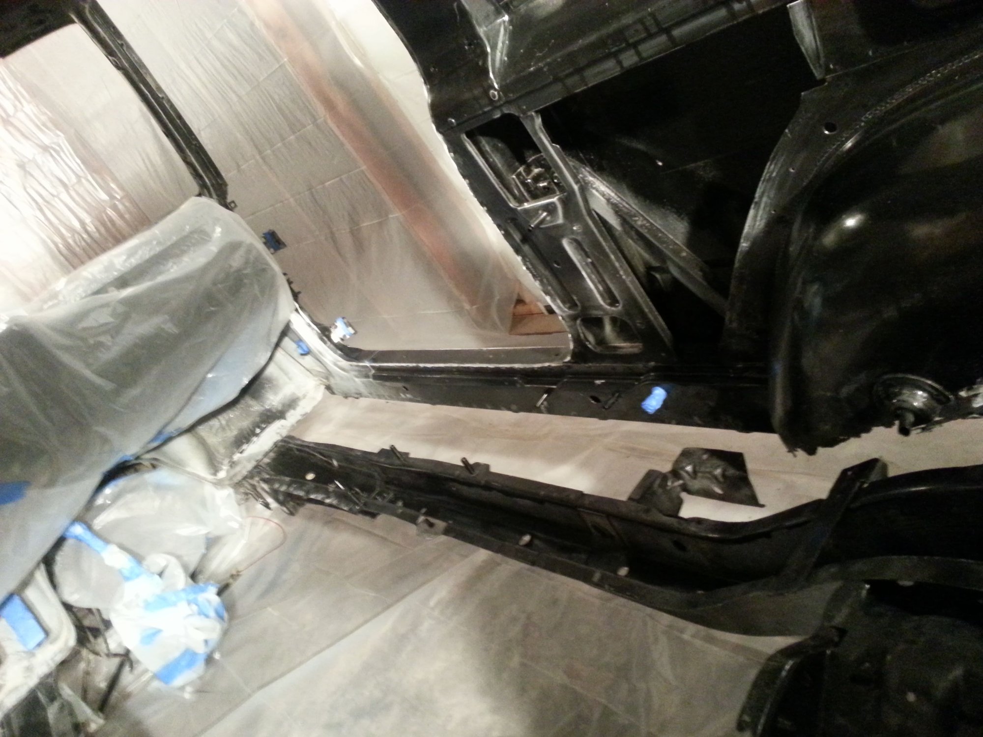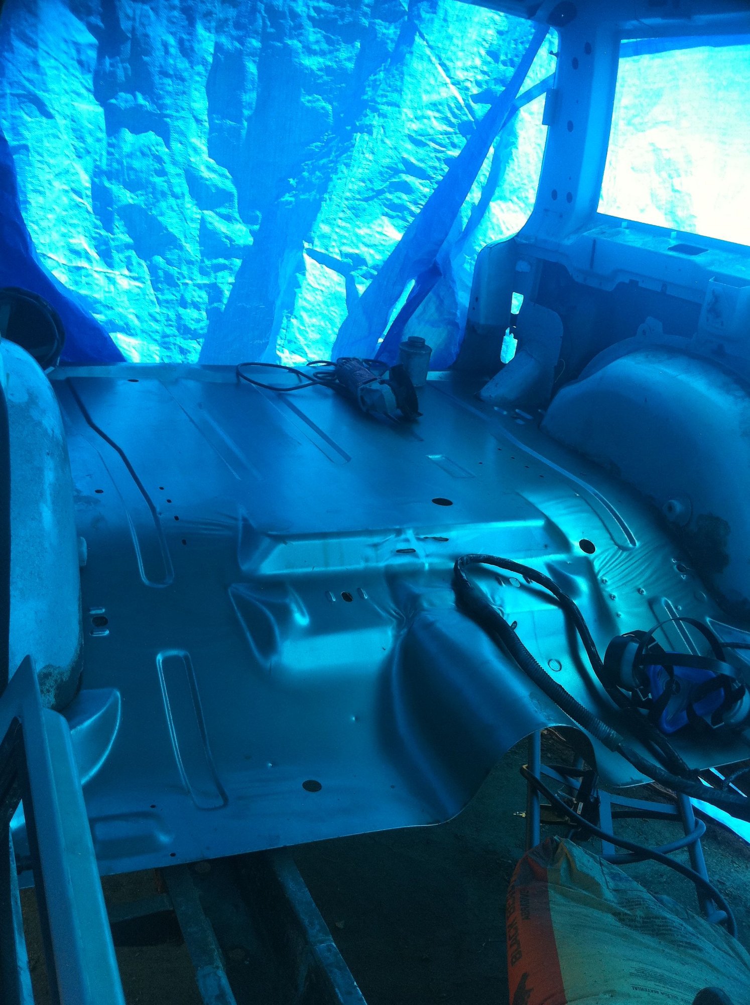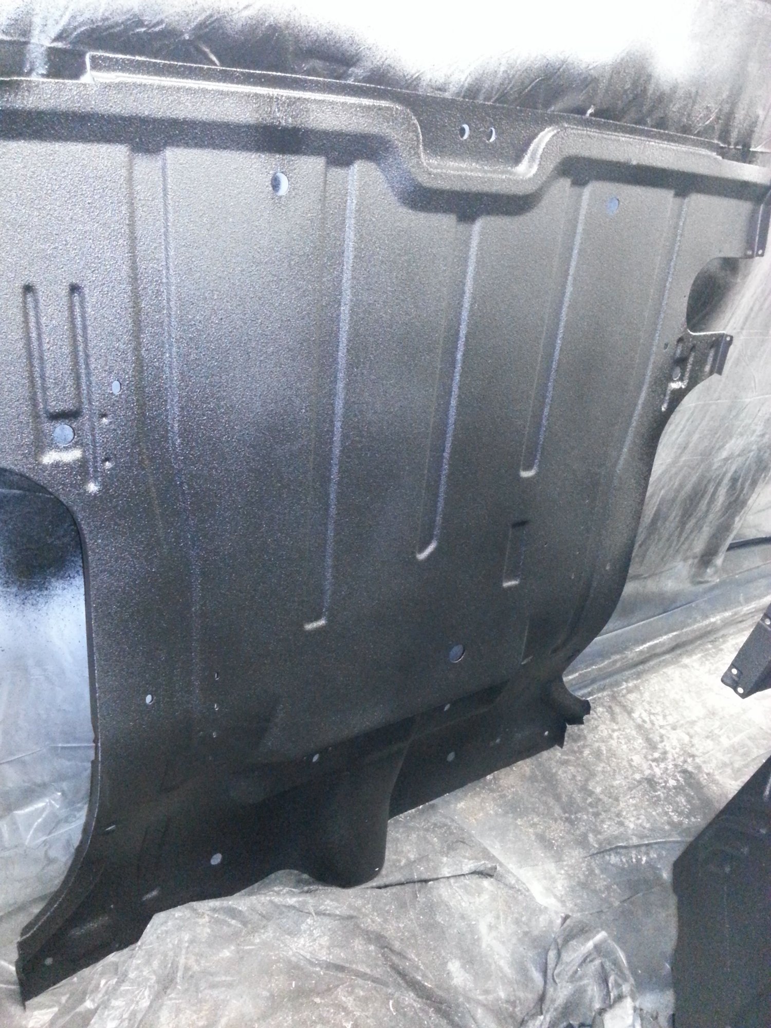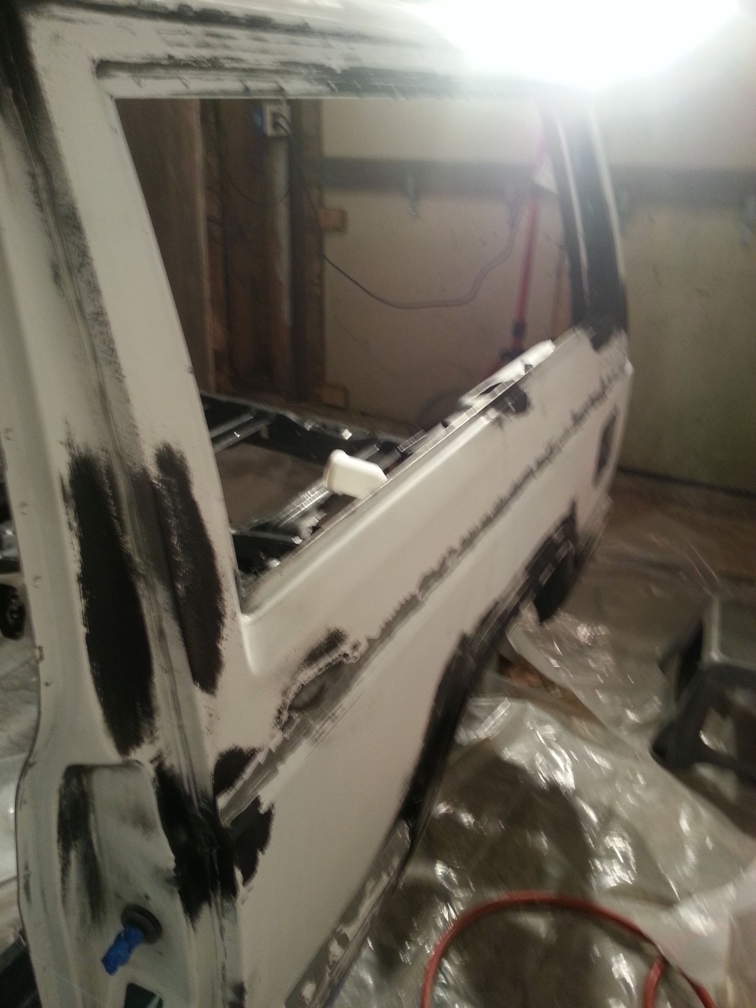 Let the scuffing begin. Im pretty sure at this point I also sprayed all the bare metal down with POR15 acid etch to prep and seal it. Let the scuffing begin. Got hours of help from a mate who helped me scuff literally every inch of the body and underside. Was such a massive help. I had tried to get POR15 sprayed right after sandblasting but ran out of time. Ended up having to scuff everything I sprayed so the next coat would bond.