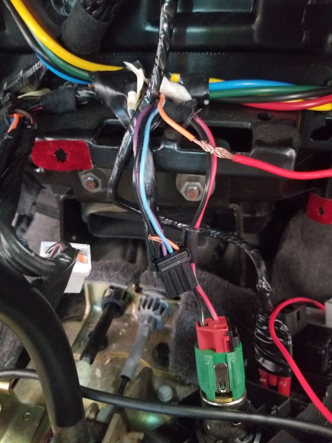 drill 2 inch hole... make a disconnect harness so you can take out the center console later... pretty straight forward... I plummed into the cigar lighter and an orange wire (dimmer switch) came out pretty slick.