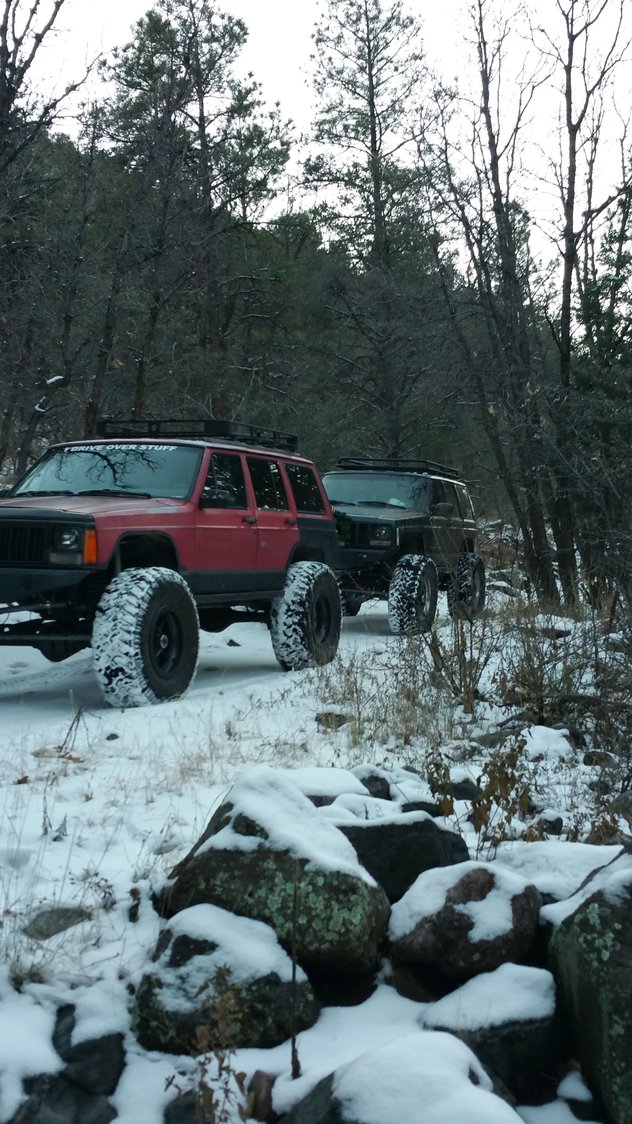 The tire size is 37s and the gears I think do great I can easily cruise 75 on the highway and still has plenty of low range grunt to get me over stuff. As for the chevy springs I love them. They ride a hell of a lot better than lift springs and I have way more travel with them the only downside is they stick out quite a bit and I drag rocks when I come down.