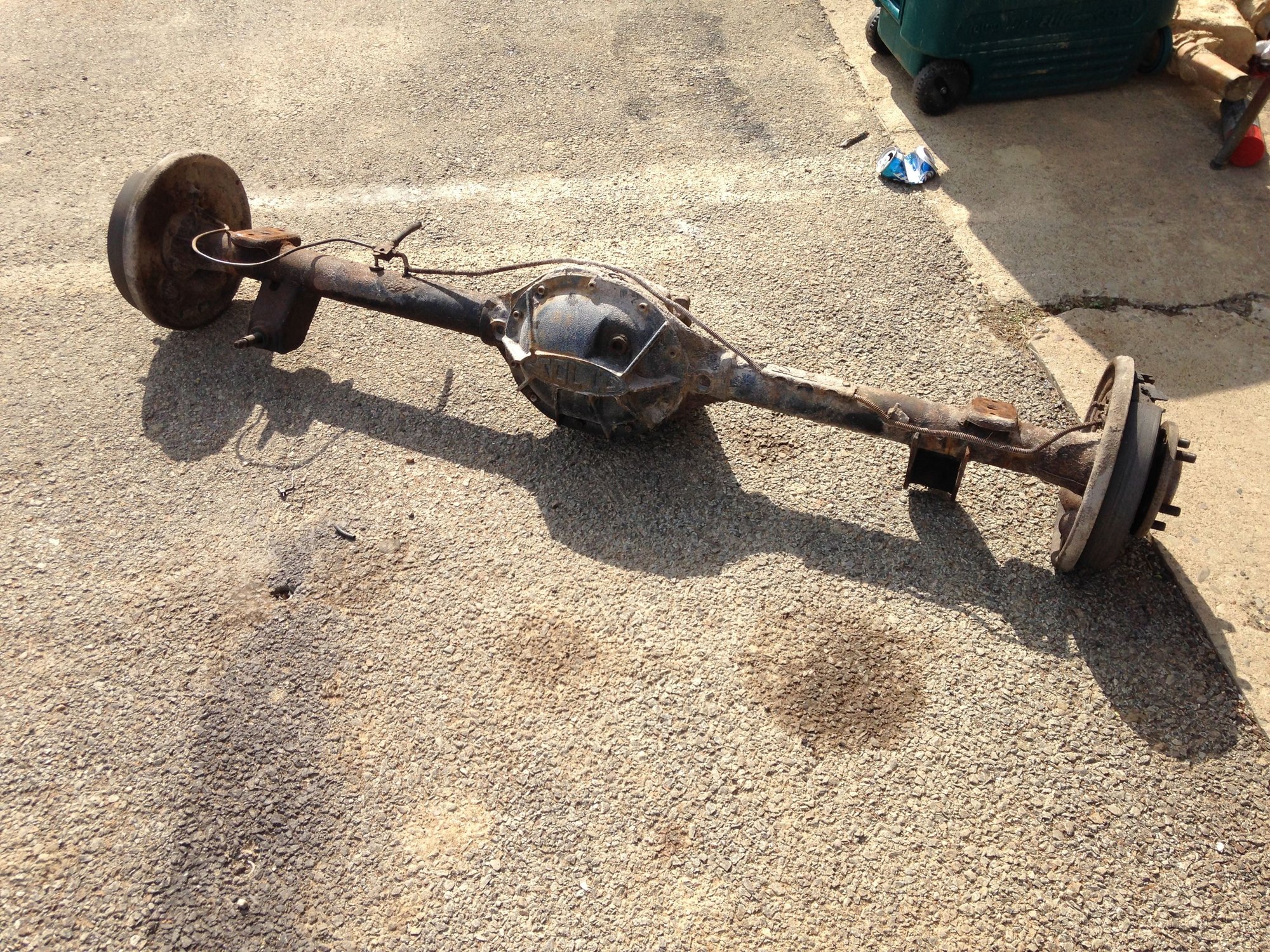 So today after class I drove over to a buddy's shop and swapped in the 8.25. Made the rear go up a little, i'm probably between 4-4.5"s in the rear now. The stock driveshaft went back in with no issues and seems to be around where it was stock. I have developed some minor vibes around 30mph but nothing I'm going to really mess with honestly. Three things I did notice from the swap. First, wow the 8.25 weights a significant amount more. Two, the D35 might of had 10" drums over the 9" that the 8.25 has but the pads on the 8.25 are twice as wide. Three, setting up the brakes I can stop on a dime now compared to before. It was great, here are the pictures.