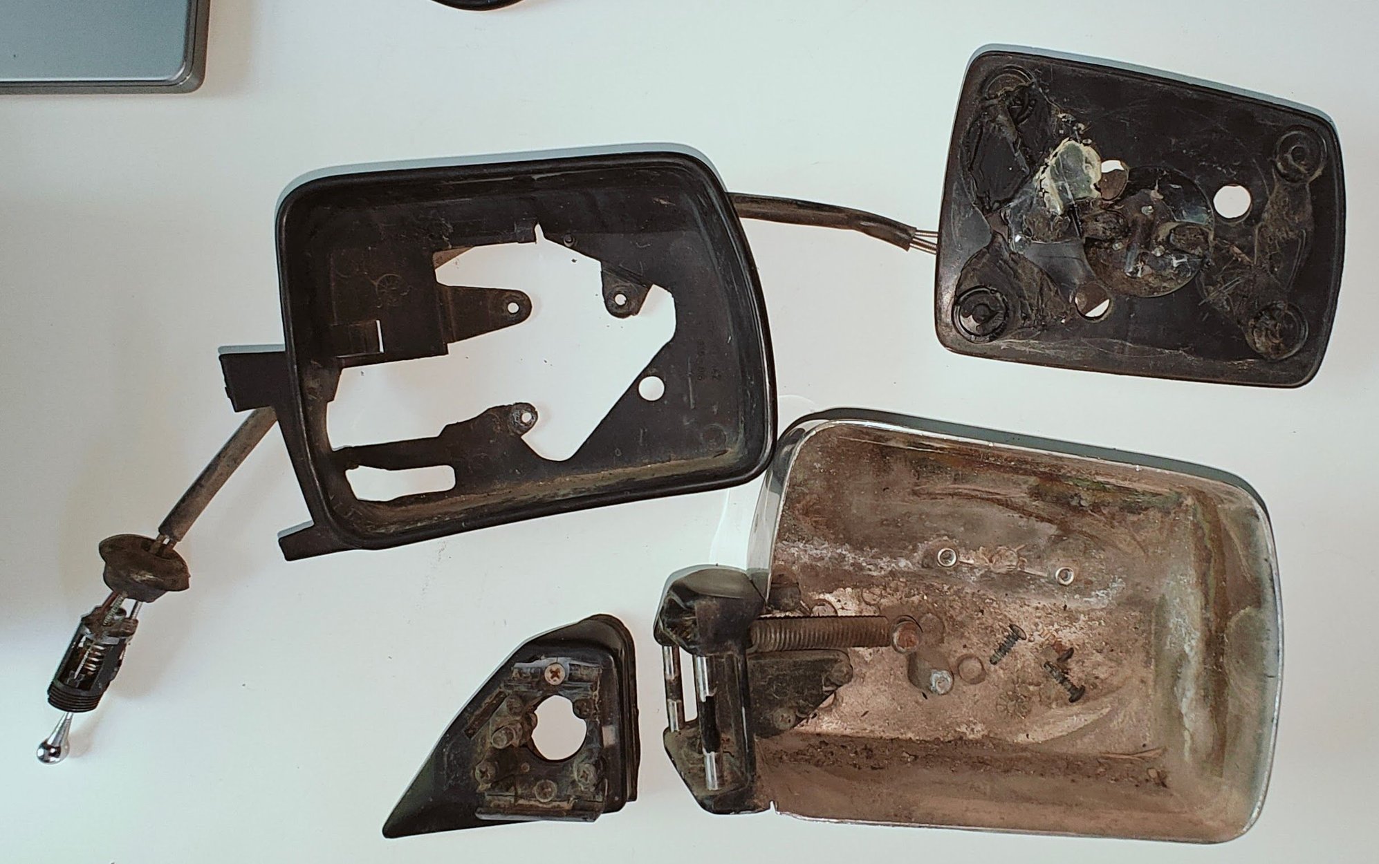 Focuses on the mirrors, had to pull them apart to clean them up. I managed to get the glass off one without destroying it but it didn't really matter since both mirror glass was going to be replaced