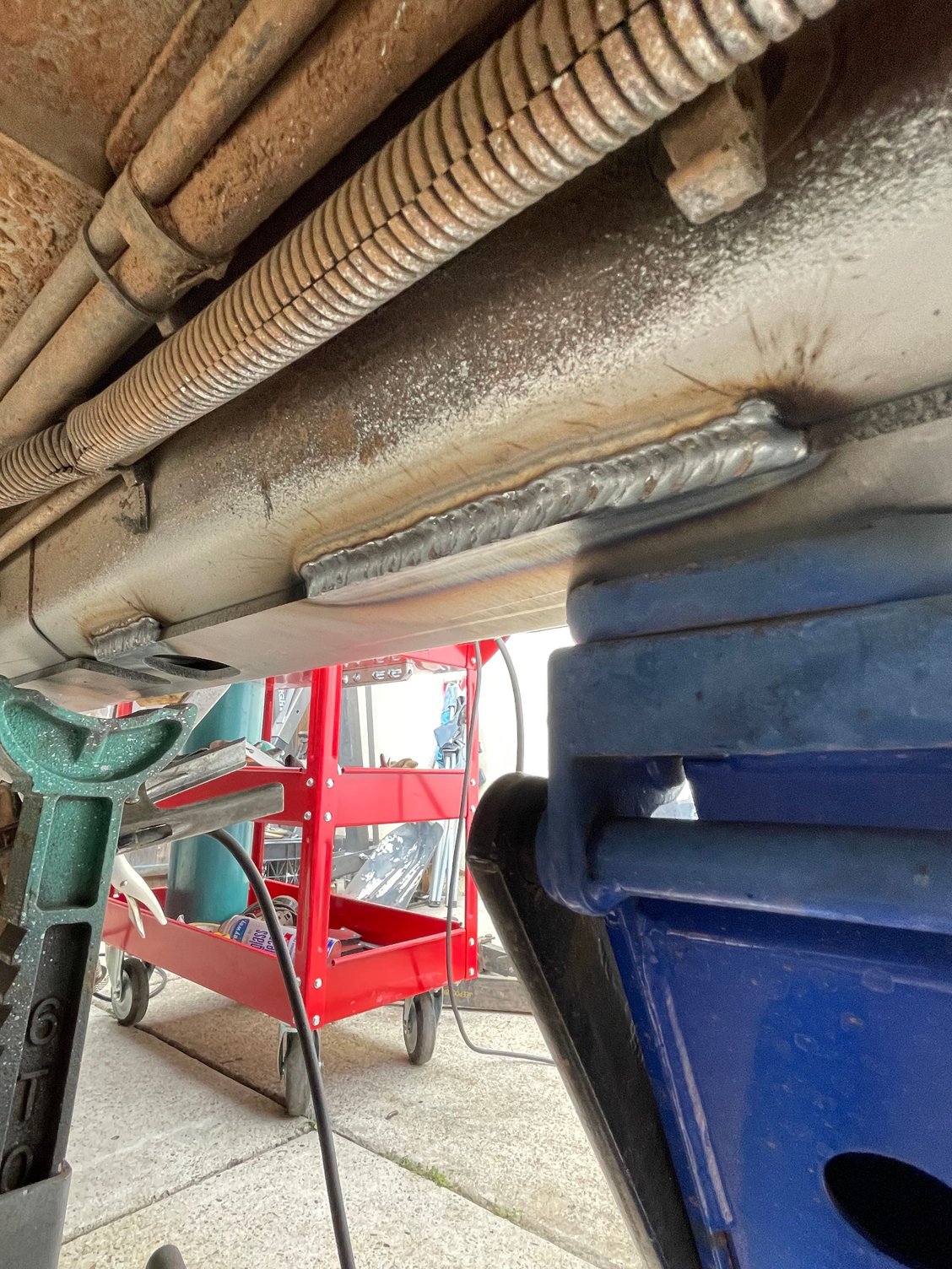 Ran out of gas so that ended my day short. I was ready to take a break anyways. Fully welded top sides and stitch welded the bottoms leaving the gaps in strategic places to let moisture drain properly and not trap water.