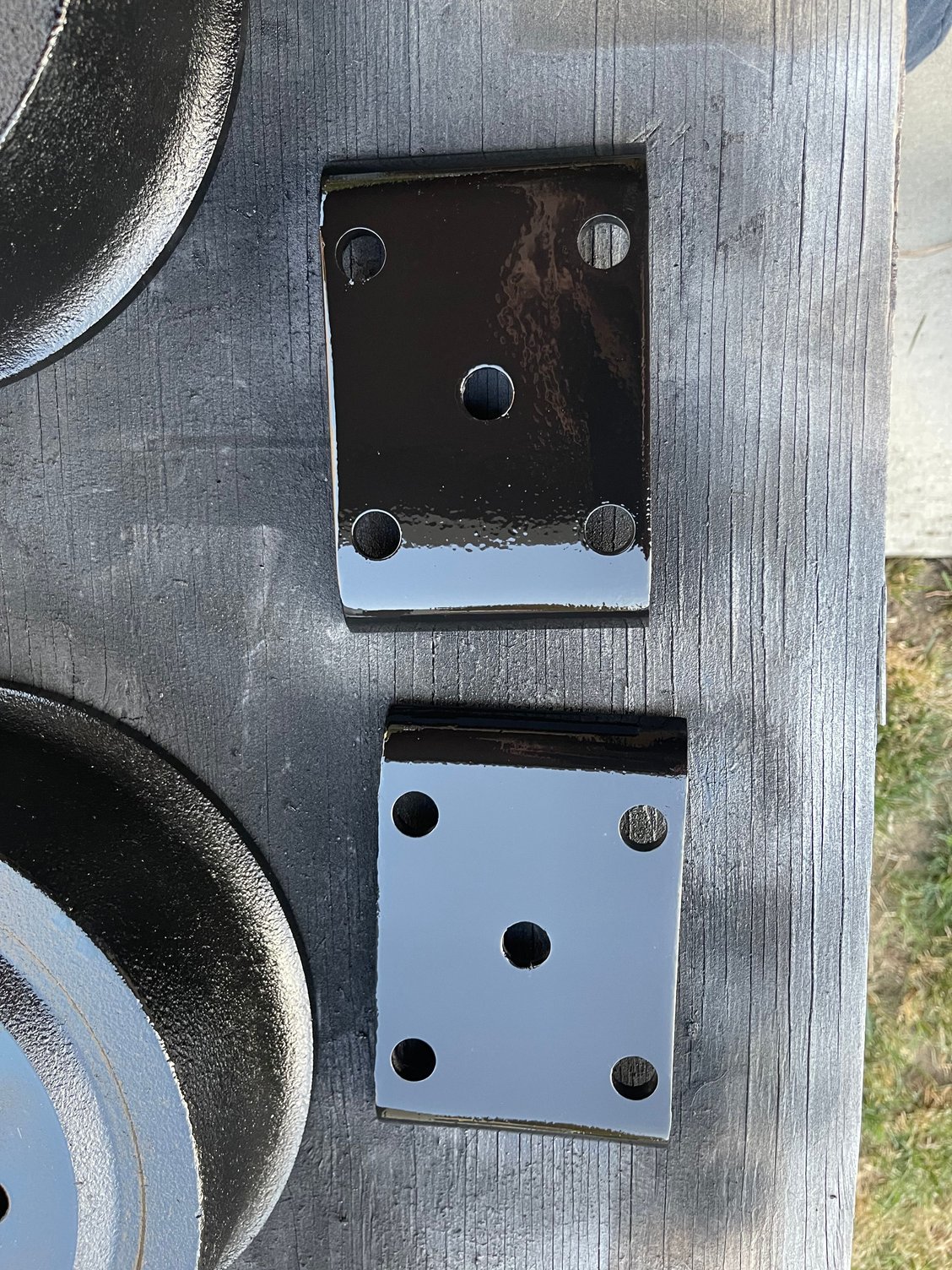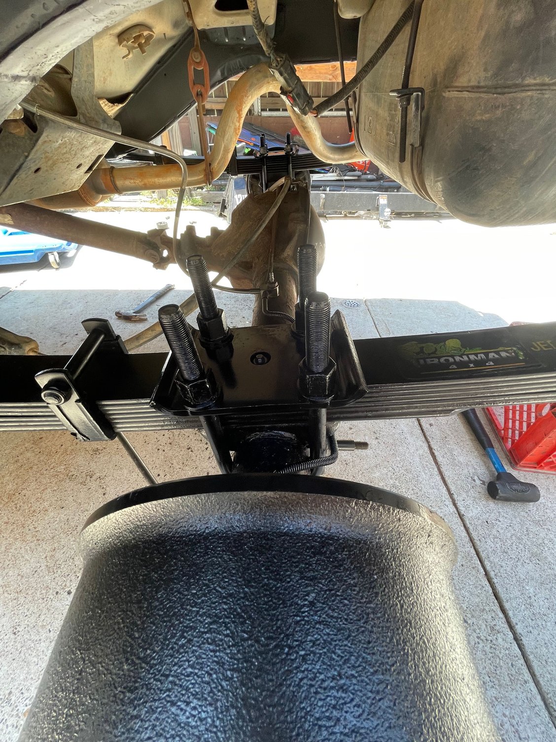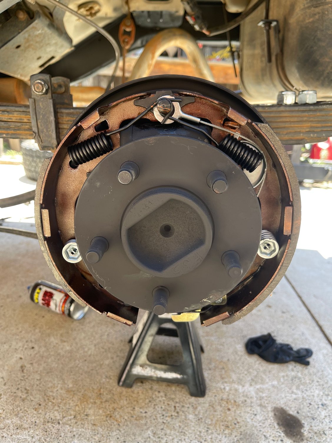 Got my new motor mounts on today, torqued down the leaf spring mounts, drums are done, brakes are bled. Drilled out my leaf spring plates so I can run larger u bolts, I’ll have those made locally.
