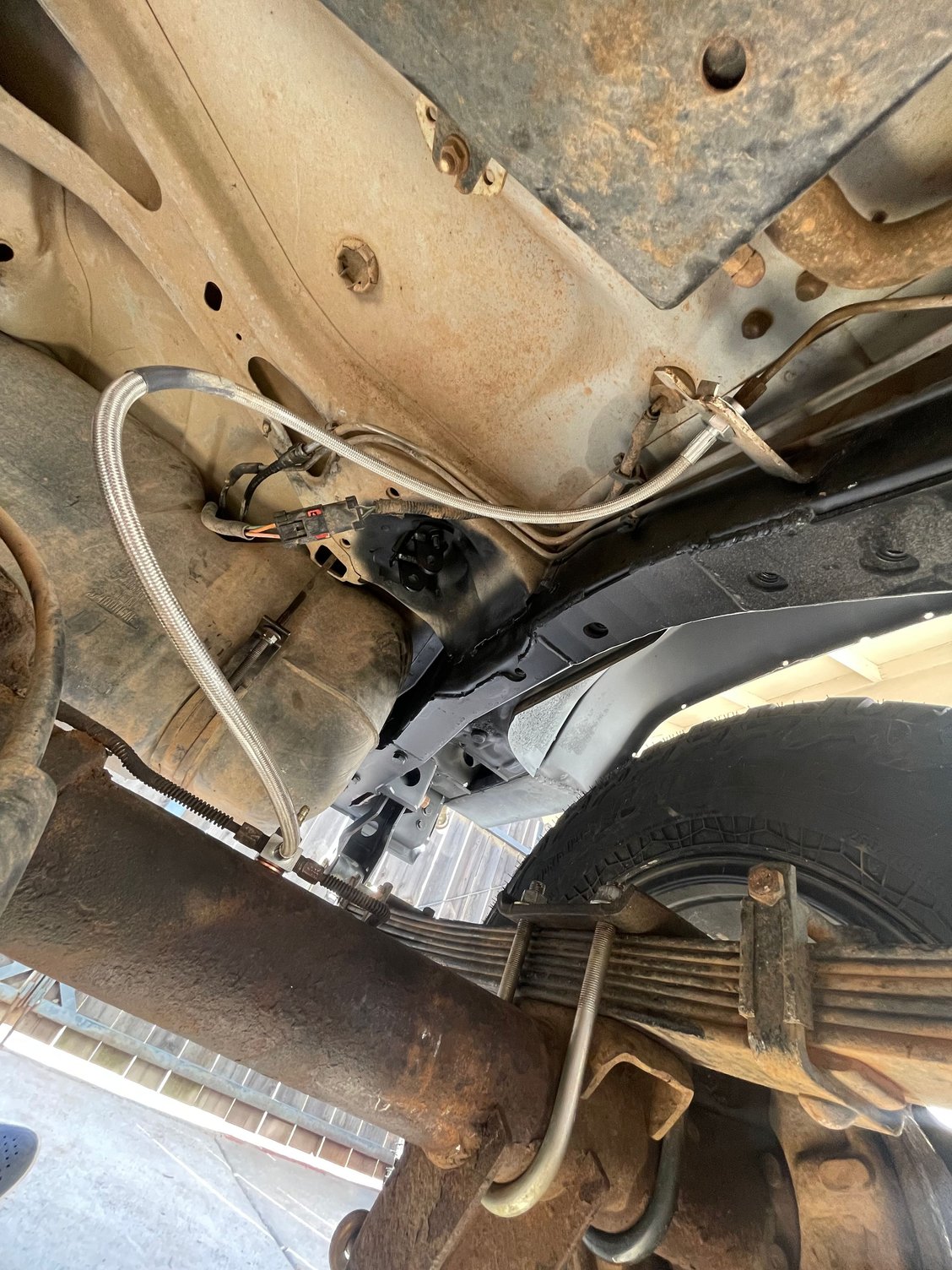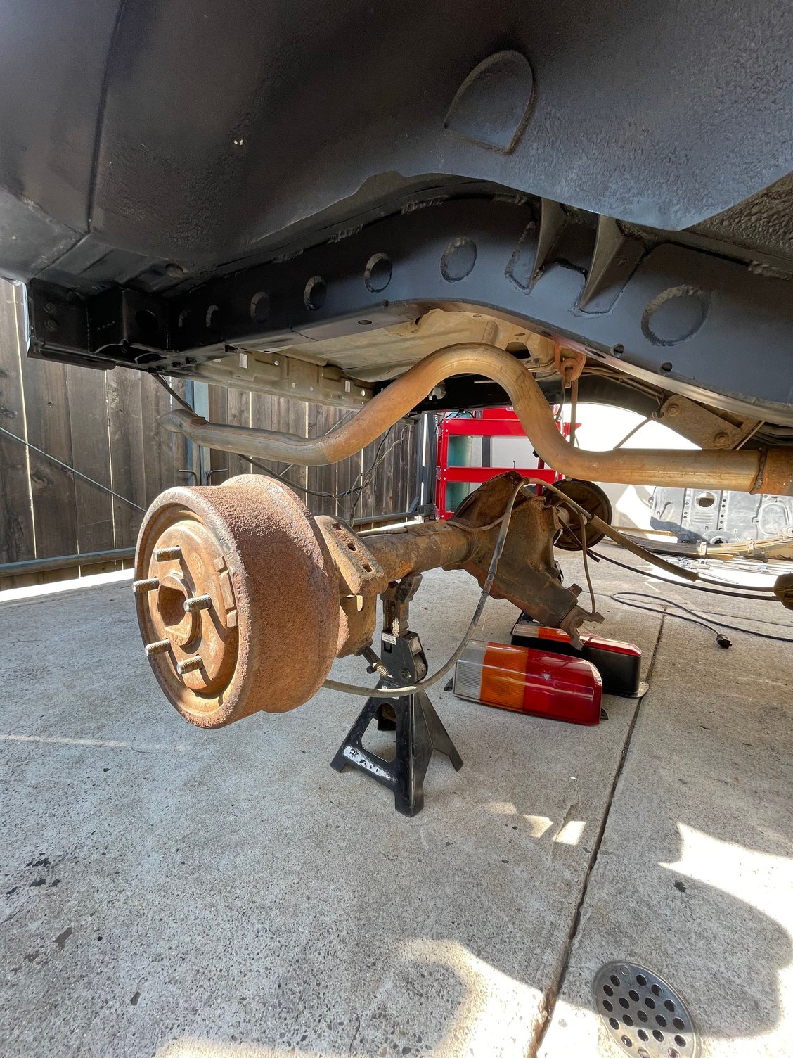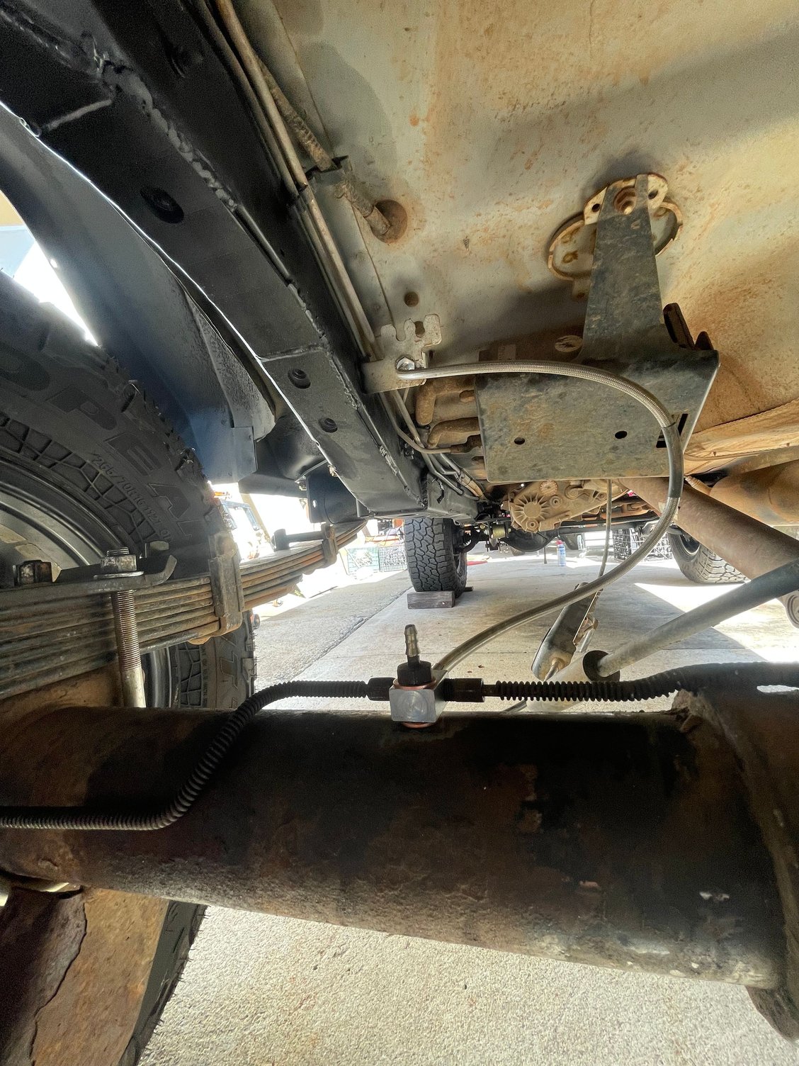 Small progress, rear brake line installed, flushed a quart of synthetic brake fluid, torqued driveshafts down, gas tank installed. Next on the list is rear shocks, seam sealer, taillights, e brake mount, leaf spring u bolts