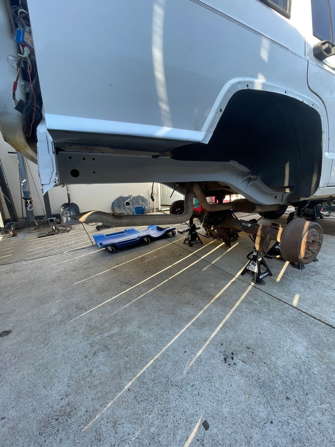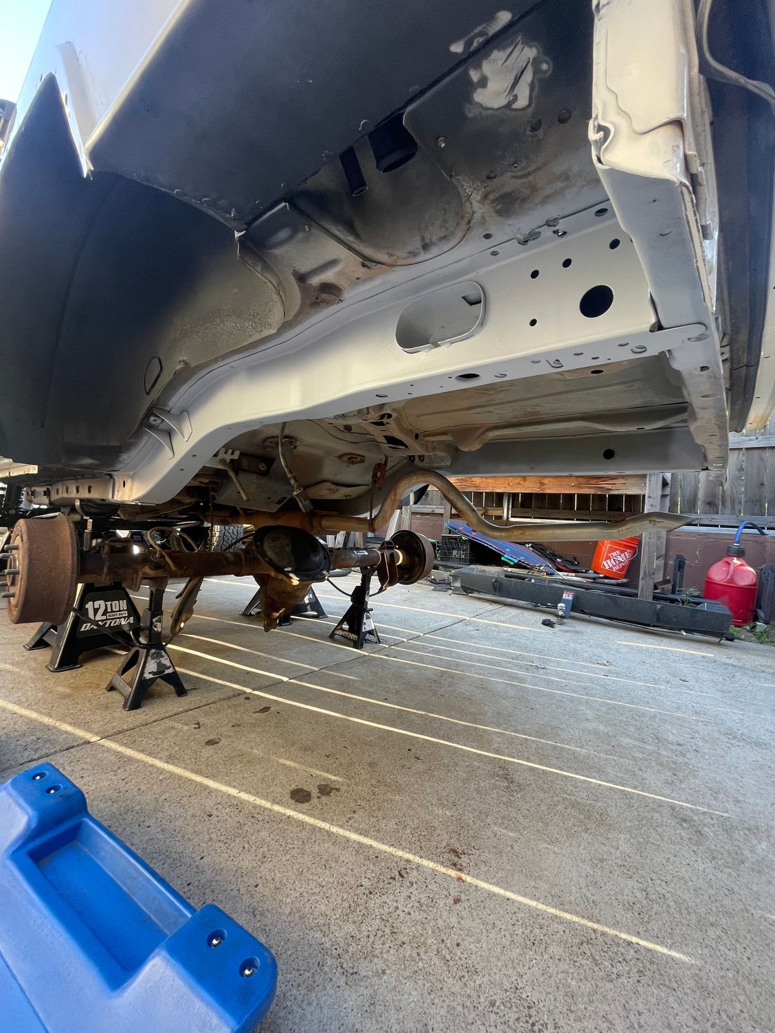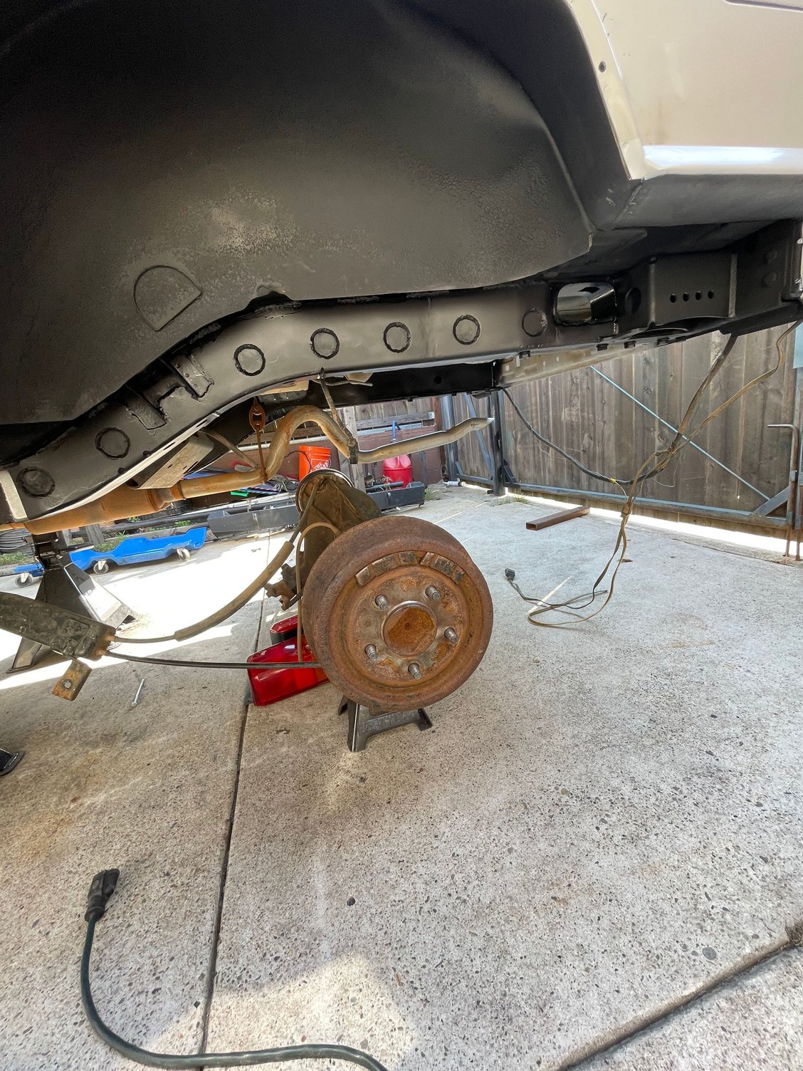 Small progress, rear brake line installed, flushed a quart of synthetic brake fluid, torqued driveshafts down, gas tank installed. Next on the list is rear shocks, seam sealer, taillights, e brake mount, leaf spring u bolts