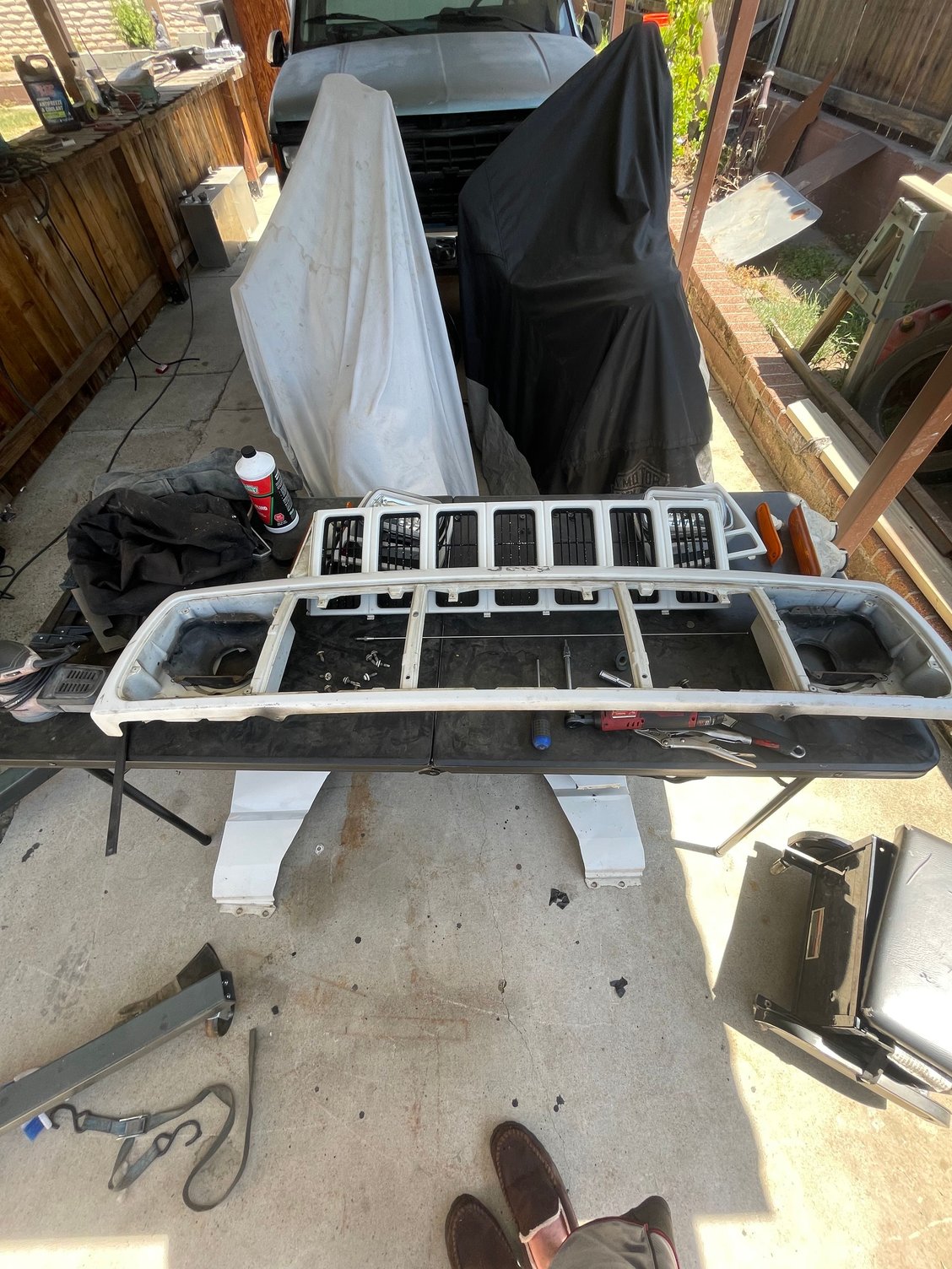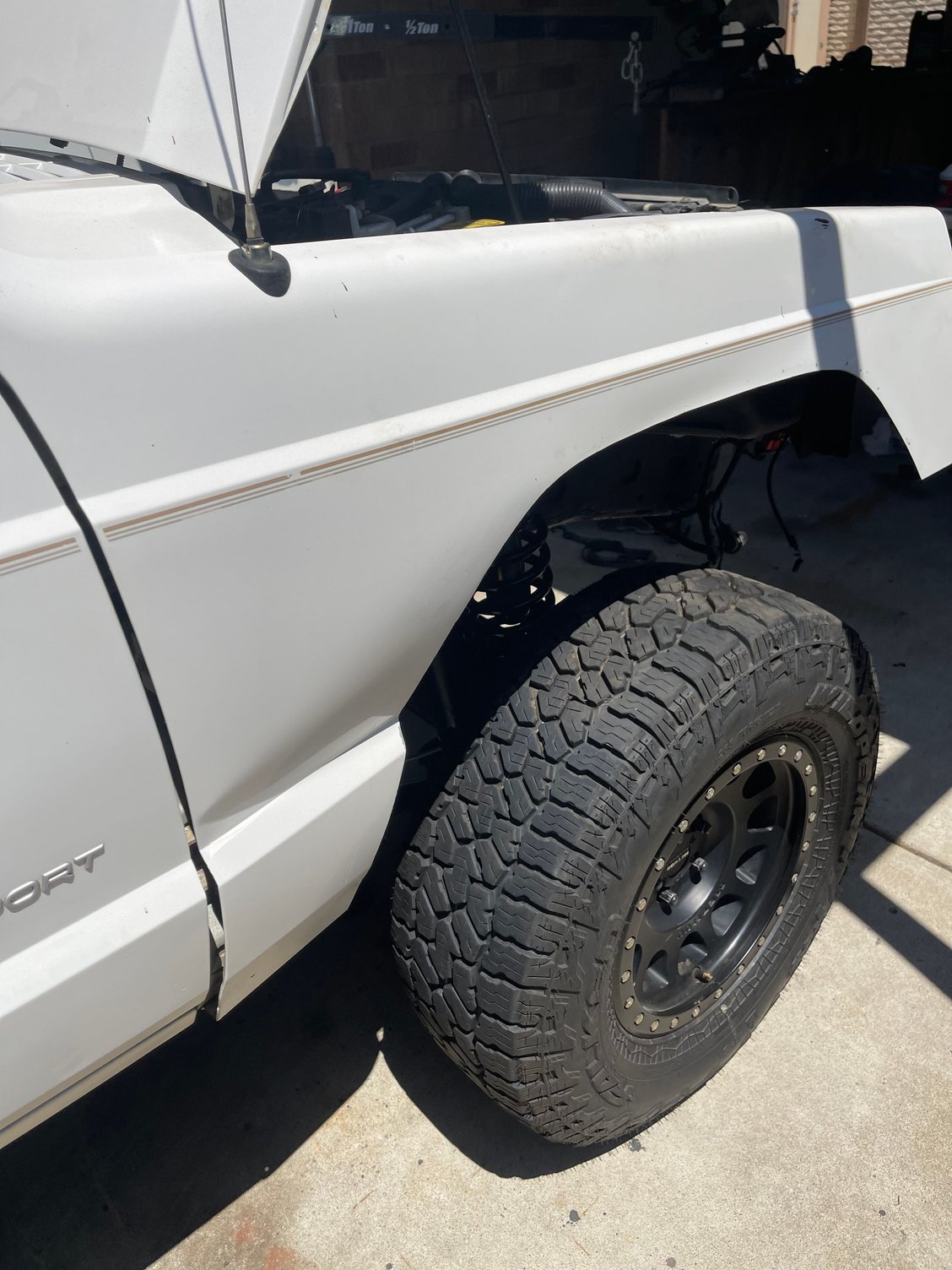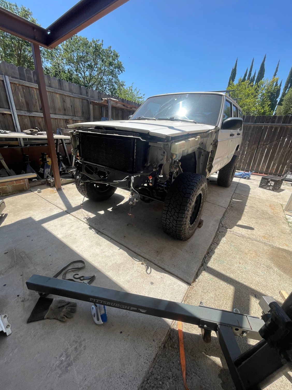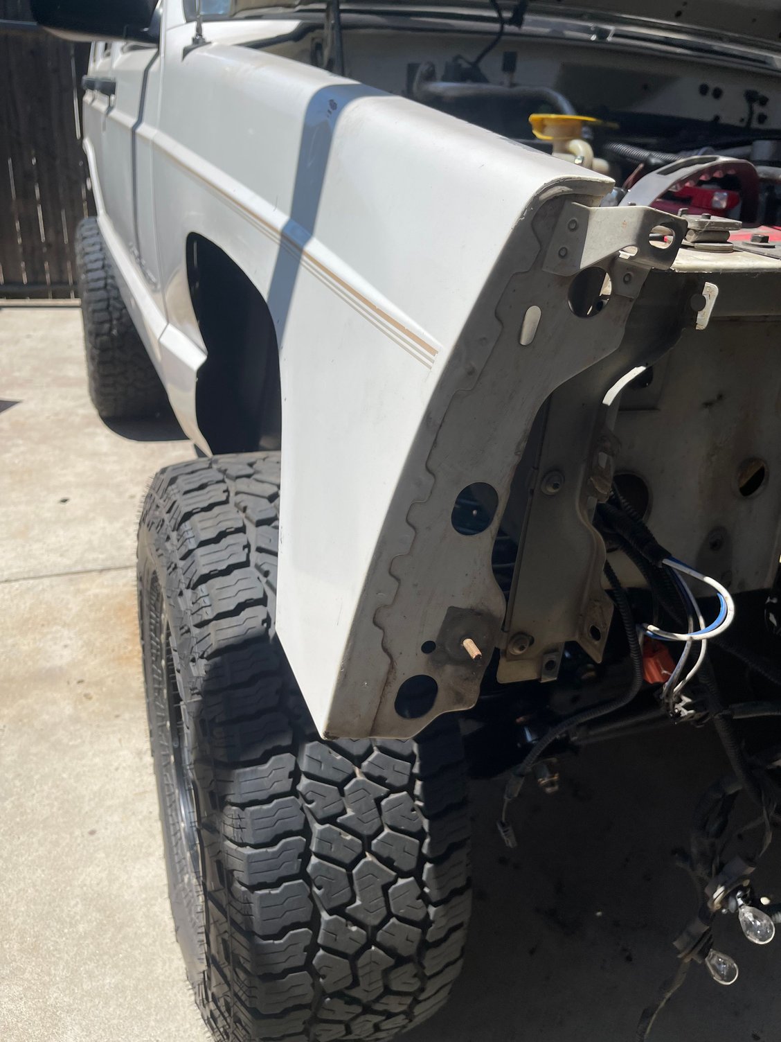 Eager to get this jeep back on the road but the front fenders were bent up bad. Decided to pull them and replace with new. I’ll probably end up respraying the front clip for now.