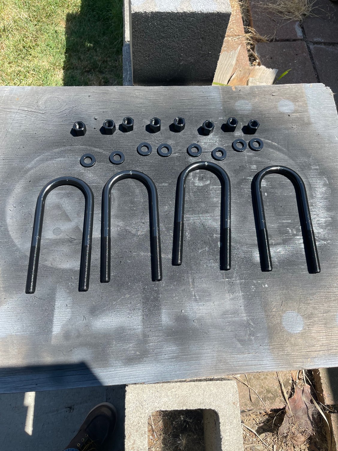 Got some quality u bolts made locally. They did a great job. Upsized the u bolts to 5/8. Big and beefy. Painted them to keep the rust away and got it all buttoned up. Finally sitting on its own weight for good… for now…..lol Jeep is sitting almost perfectly level. 1.5 degrees of rake, slightly taller in the rear.