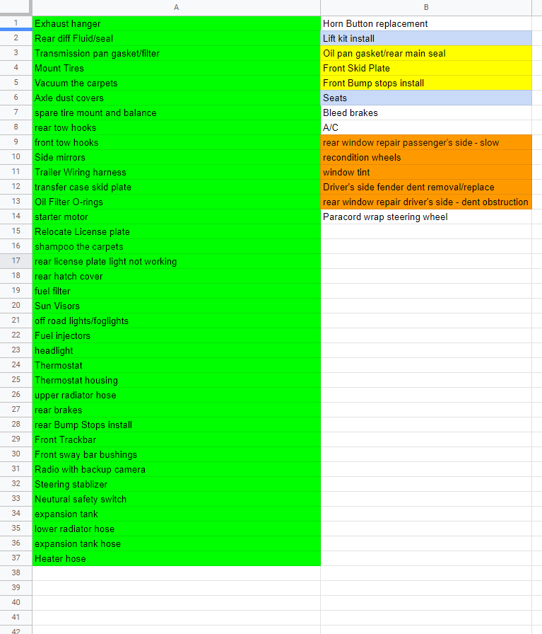Not sure if anybody is still following this, if you are, Do you like me posting my working list? I updated it with some work I've done and some parts I've ordered, I also had to break the list, because it was getting too long to take in one screen shot, and I have a pretty high resolution screen...