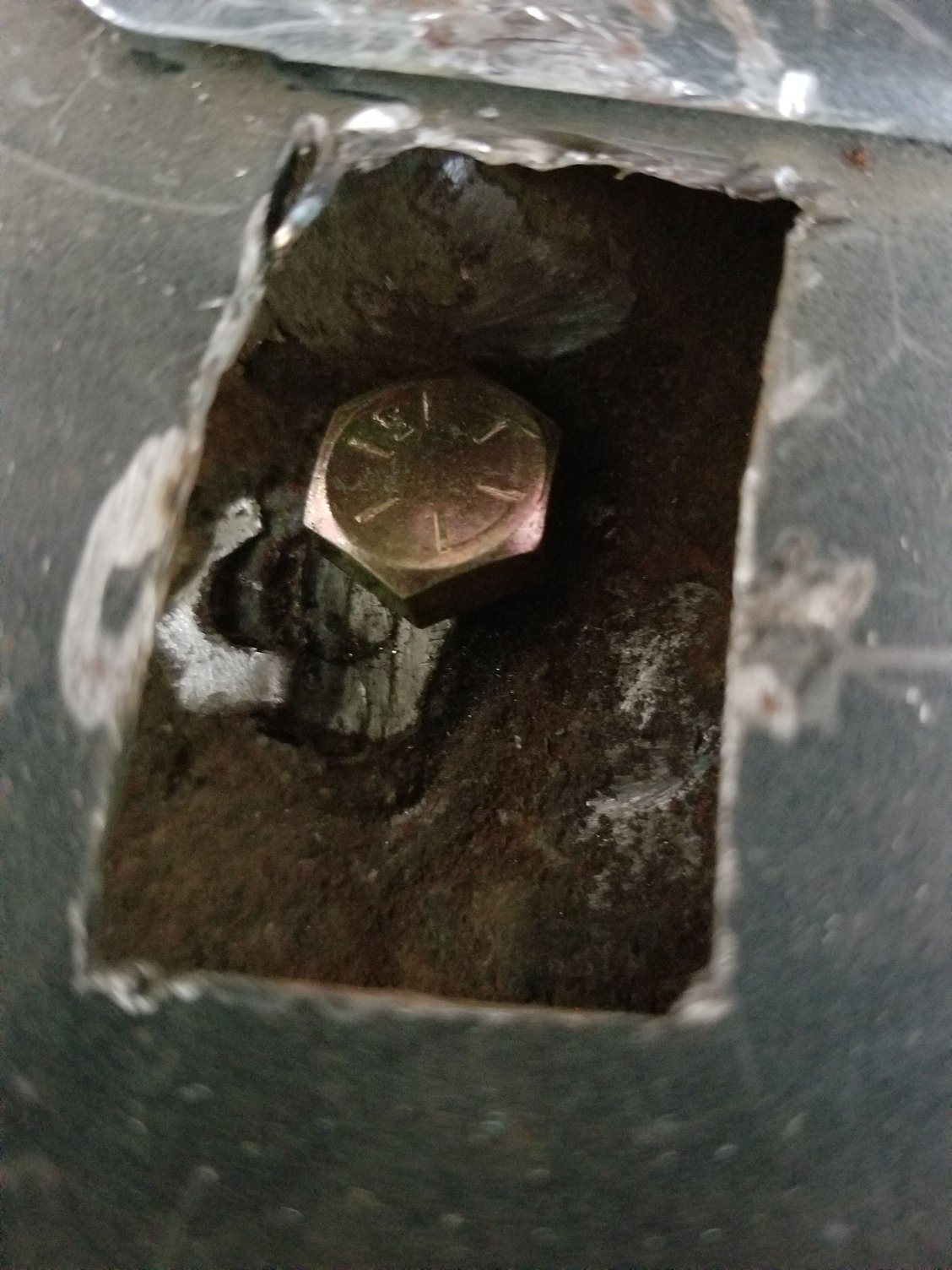 You can see where the original allthread and nut were... I cut them from the top. Bolt enters right next to that...