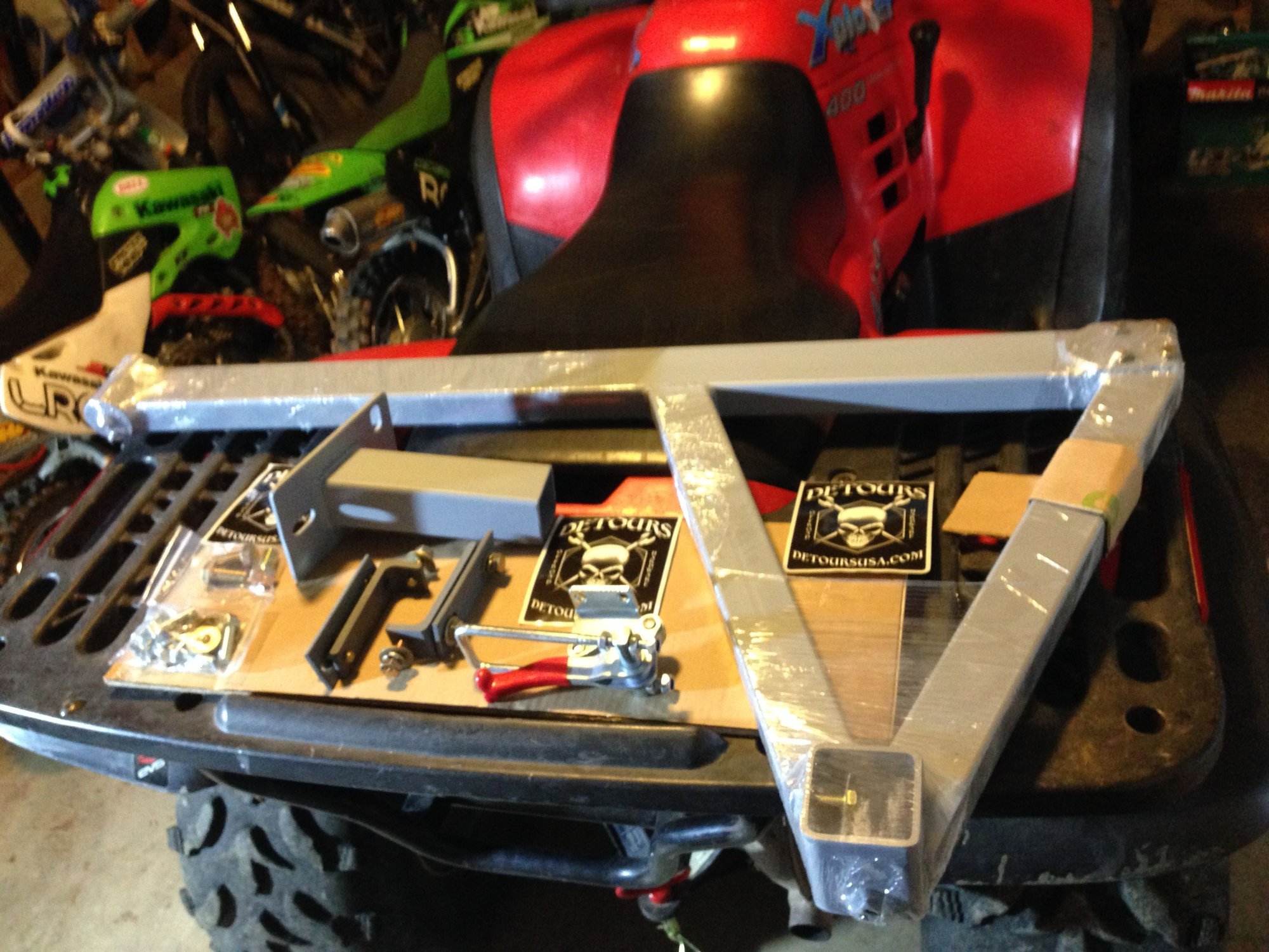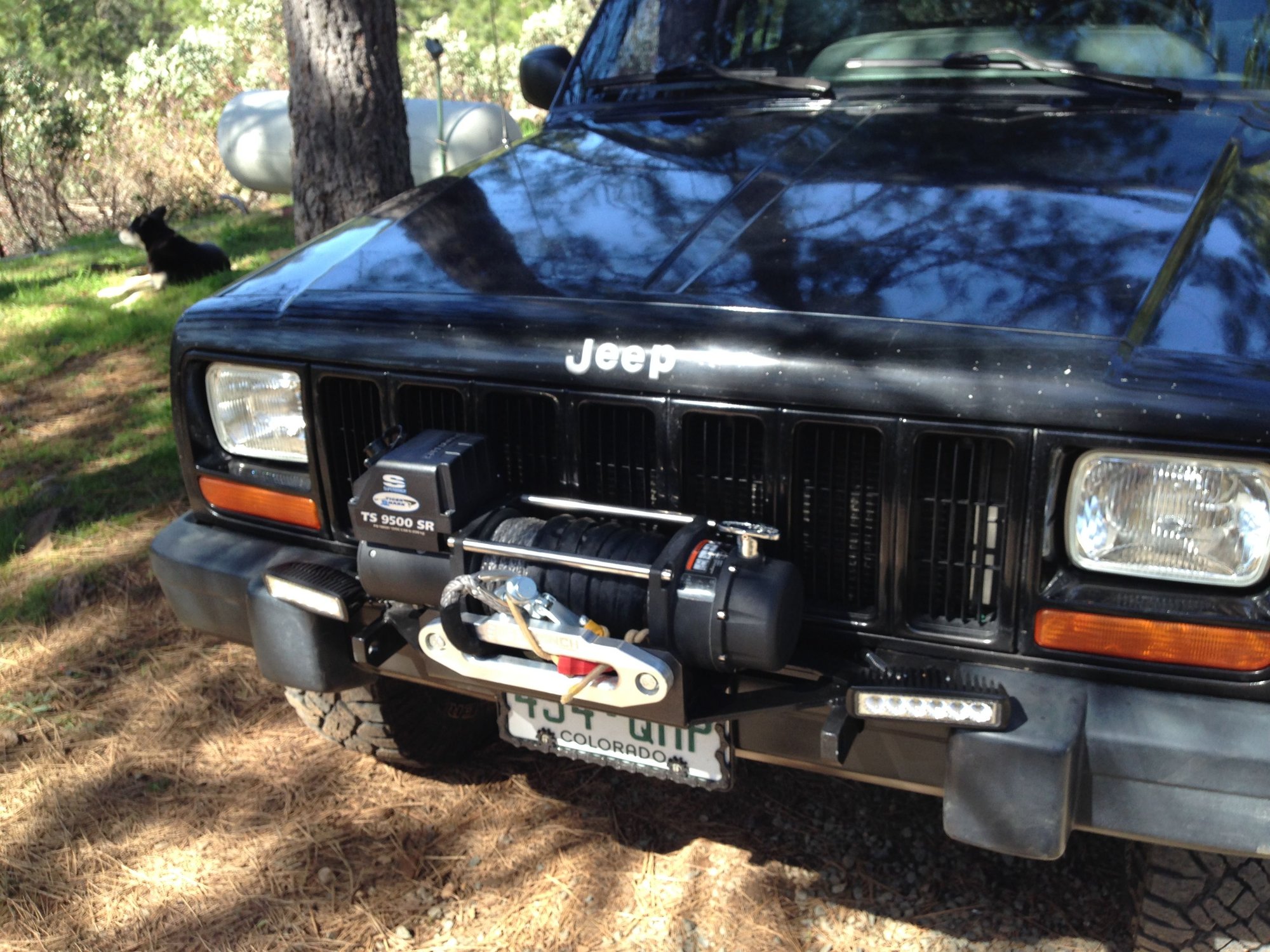 I also went with Detours for their front frame-stiffening winch mount. framerail/unibody stiffener and winch mounting plate stock bumper chopped out to fit mounting plate Foglights and plastic bumper trim re-installed Superwinch TS9500 mounted up and wired in.