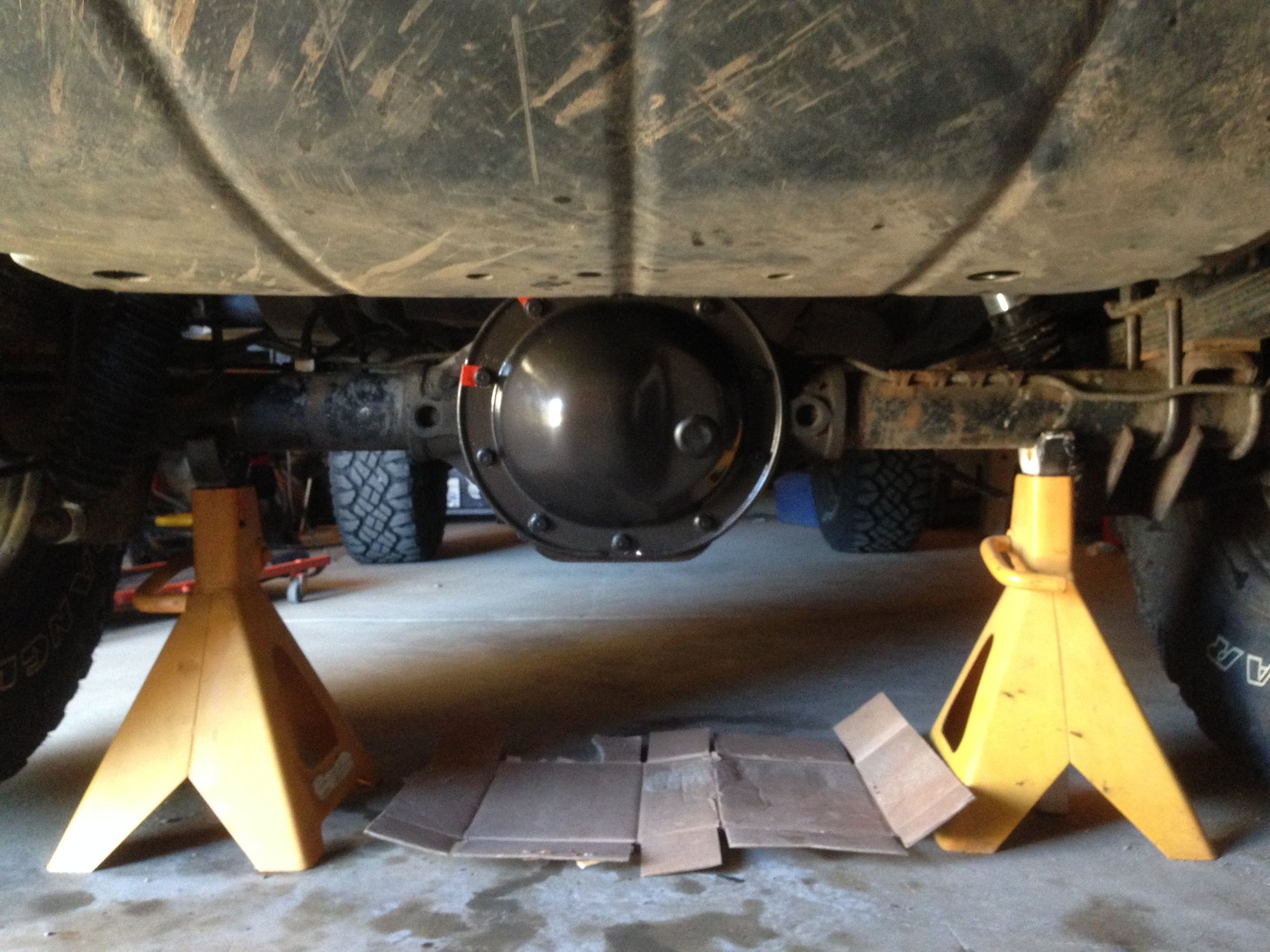 A slightly damaged axle-shaft was swapped with a straight one from the JY, which gave me the opportunity to clean and paint the stock diff cover. freshly painted diff cover