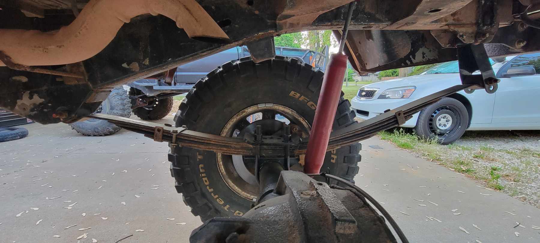 The interior is lacking - its definitely noisy in there going down the road https://cimg6.ibsrv.net/gimg/www.che...5489c9d66.jpeg The rear brakes are completely smoked! Surprisingly the guy i actually bought it from was still driving it to work a couple times a week YIKES! https://cimg9.ibsrv.net/gimg/www.che...d950dd326.jpeg Im not huge on this leaf spring perch and u-bolt/spring plate combo. I'm much more for the RuffStuffSpecialties/Barnes4wd extended leaf spring mounts and those fat in s3xy 5/8 u-bolts and thick top plates! Definitely on the list! Also note the factory monroe blue shocks - they are dead btw! https://cimg5.ibsrv.net/gimg/www.che...b72a2760d.jpeg Notice the bolt head welded directly to the axle tube- likely a former shock mount setup? https://cimg0.ibsrv.net/gimg/www.che...2fffd82bb.jpeg We'll also just sneak this spare bolt back here as an easter egg... Seriously were these shock mounts replaced at a muffler shop or something!? https://cimg1.ibsrv.net/gimg/www.che...59de90532.jpeg Fuel pumps can be finicky - very functional replacement and why remove the old one when its been secured safely to the floor? https://cimg7.ibsrv.net/gimg/www.che...652447f90.jpeg This track bar mount looks like someone had a bad day or maybe 2-3 bad days. Yes its lose as well the tie-rods being badly worn out. https://cimg8.ibsrv.net/gimg/www.che...637443cb7.jpeg Originally setup with an optima battery with side mounted terminals. Replaced with a big boat battery with some short power and ground leads bolted through brass couplers with transfer the juice to the truck https://cimg2.ibsrv.net/gimg/www.che...5199293e6.jpeg What can i say? Its definitely in good hands now ;) ThatJeepGuy is gonna makes things all better! |