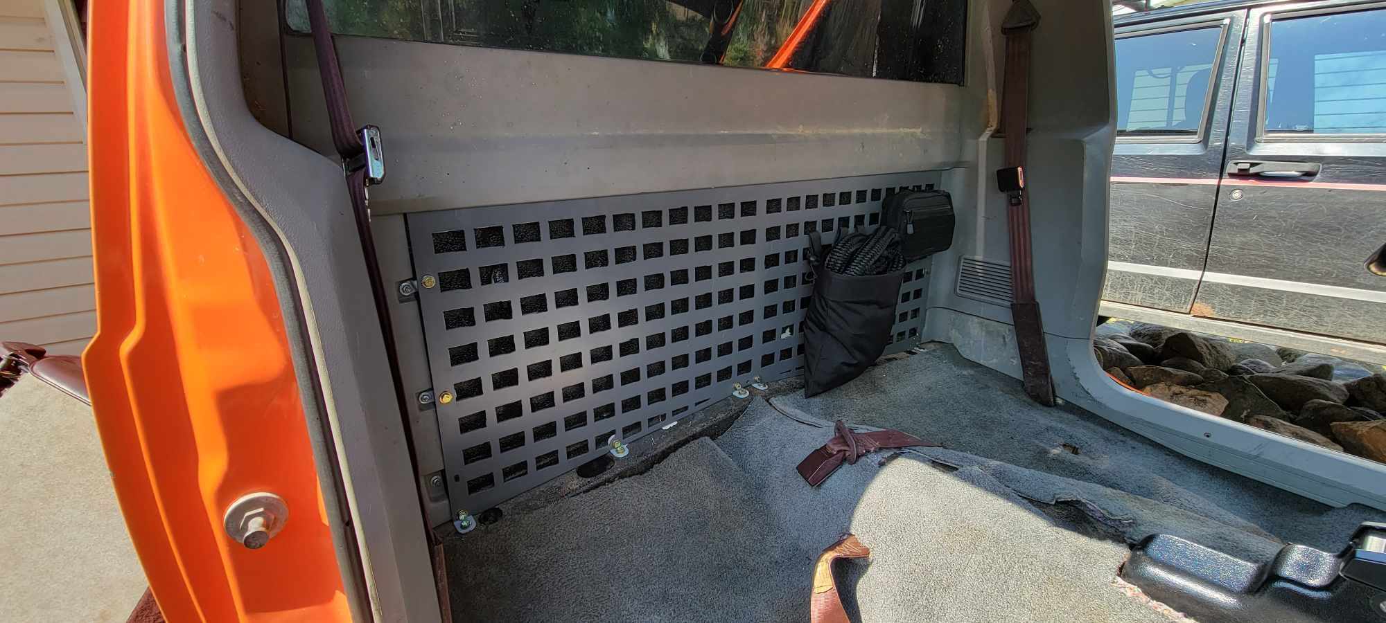 Very Secure! https://cimg1.ibsrv.net/gimg/www.che...596c9d6fd5.jpg https://cimg9.ibsrv.net/gimg/www.che...e07d7cb389.jpg https://cimg6.ibsrv.net/gimg/www.che...fcadd60d7.jpeg Very convenient! Currently storing my kinetic rope in a universal mag pouch and then my snatch block w/ soft shackle in the small pouch on the right. https://cimg7.ibsrv.net/gimg/www.che...43920fa36.jpeg Unsuspectingly and securely behind the seat. I couldn't be happier with the finished product thus far. There are still a few changes i have to make to the design for my final product but this will do for now. https://cimg8.ibsrv.net/gimg/www.che...303882fb32.jpg |