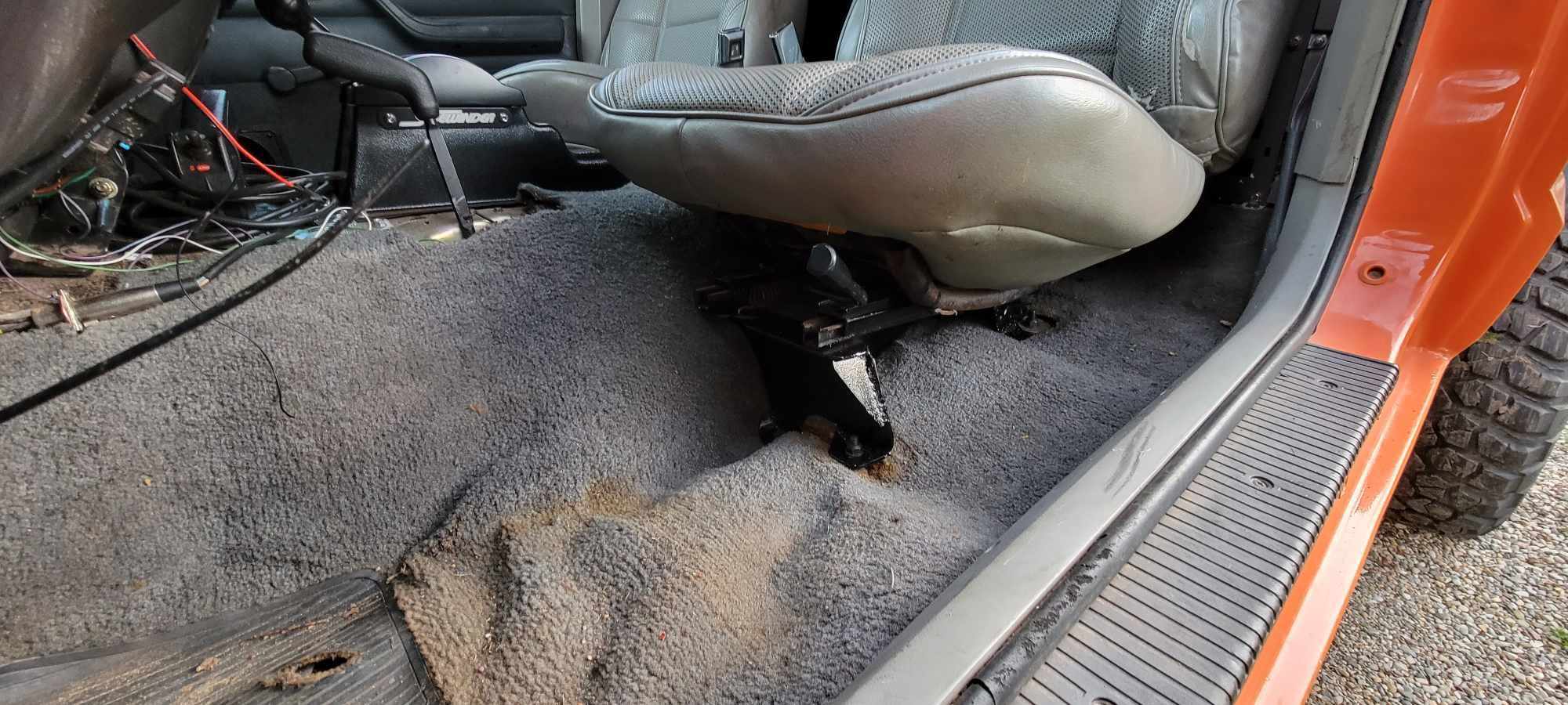 https://cimg0.ibsrv.net/gimg/www.che...79a88af29f.jpg The new panels were from a limited which off course they had power windows soo a new hole for the window crank had to be made. Pilot drill bit and then a 1" paddle bit made easy work of this. Cut a + into the interior side fabric and then crank windows it is! https://cimg1.ibsrv.net/gimg/www.che...eb96c8d58b.jpg https://cimg9.ibsrv.net/gimg/www.che...b8476f20d.jpeg So i do need to find the retainers for the upper part of the door handle. Also gonna be on the lookout for a completely black door handle trim. The speaker grille will get replaced/deleted as well. Currently no speakers in the doors soo either a cleaner looking flush beauty cover or an actual speaker and round speaker grille will go in so long as it still clears the window crank. https://cimg6.ibsrv.net/gimg/www.che...969c06ea98.jpg Floor insulation from a 92 XJ fit fine enough for my needs after some trimming. https://cimg4.ibsrv.net/gimg/www.che...7d2b8c59cd.jpg Followed up by the carpet from the same 92 XJ again with a little trimming here and there im satisfied with its overall fitment. https://cimg5.ibsrv.net/gimg/www.che...d4e3903bdb.jpg Bench seat re-installed with all new nuts https://cimg7.ibsrv.net/gimg/www.che...73e2352ef6.jpg https://cimg8.ibsrv.net/gimg/www.che...c9e1e211cf.jpg A little hard to make out in this picture but i dug into my shed for this grey set of MJ interior trims. The original burgundy B-pillar and rocker trims will likely go under the paint can to get this closer to a color matched interior. The bench seat i have not decided on just yet whether i have it re-upholstered or just go with a simple seat cover. https://cimg0.ibsrv.net/gimg/www.che...e4b574025c.jpg |