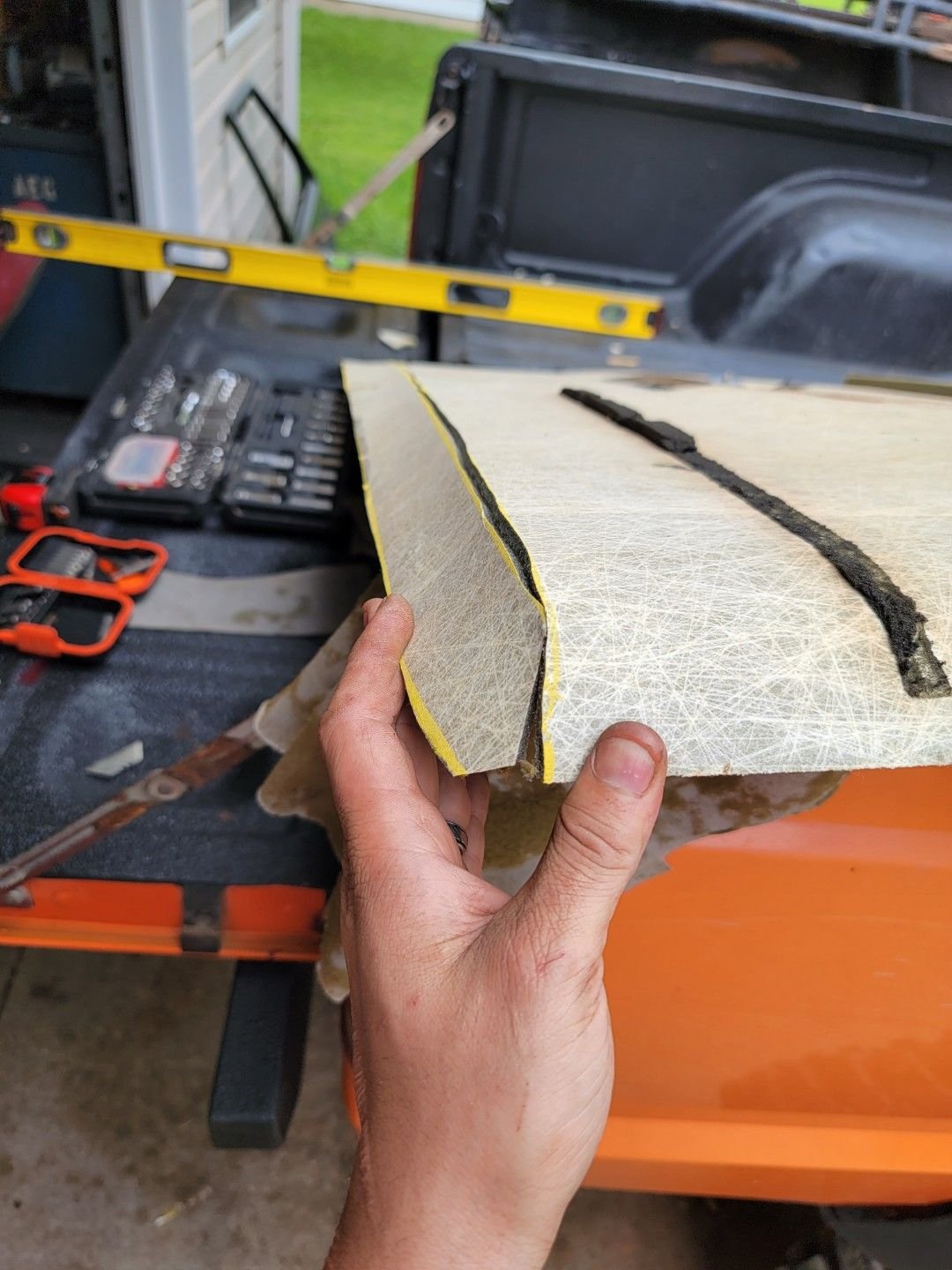 https://cimg2.ibsrv.net/gimg/www.che...7a34d276c.jpeg Ive been in an MJ or two over the years without a headliner at the very least and its like getting kicked around in a tin can when things hit the roof. I got a box of this kilmat for try out for sound deadening so basically because it was already clear access i figured id throw a couple squares up there. A light introduction into the application of the kilmat itself is the least that comes of it and im good with that. Noticable difference or not? i'm pretty satisfied with how well it stuck to the ceiling and also there wasnt much of a lingering smell after all said and done. https://cimg4.ibsrv.net/gimg/www.che...4c805ac91.jpeg To start off - i grabbed a headliner out of the junkyard from a newer bodystyle XJ. I also grabbed the overhead lamp and factory hanger/bracket to go with it. This is skipping a few proper steps of how the process actually worked out but ultimately i mapped out where the overhead console was going to be sitting after i had the headliner trimmed and fitted, then modified the overhead brackets overall length to line up where i needed it. Trimmed about 1 5/8" off the end of it and then secured it to the MJ's factory inner cross support of the B-pillar using a couple rivets. https://cimg7.ibsrv.net/gimg/www.che...e5570416d.jpeg With a centerline drawn for reference the point here wasn't for an indestructible mount - just merely a solid anchor to keep the light fixture from bouncing. https://cimg0.ibsrv.net/gimg/www.che...5dc16efb6.jpeg Now onto the actual headliner trim. I did a blind cut to get it out of the XJ in the yard - basically split half the rear doors and just razor'd the thin across. There is a factory squared edge about the same spot of the rear grab handles in the ceiling. I started here with my cut for overall length (thats front to back length). https://cimg4.ibsrv.net/gimg/www.che...cab04072e.jpeg I only cut the outer layer of the headliner - this was it will fold down easily and still be attached. The end got cut all the way through and also the corners cut off https://cimg5.ibsrv.net/gimg/www.che...f85686278.jpeg https://cimg9.ibsrv.net/gimg/www.che...015481b8a.jpeg Rolled the edge over and test fit - sry but no continuous pics from the repeated install process but it was still too long. Drew another line about 1" forward and again - trimmed just the out layer and test fit - close but not there yet So finally just about 3/4" more and another outer later cut and then also removed that first initial chunk as it was only hindering my fitment at this point. https://cimg1.ibsrv.net/gimg/www.che...bcc0cb023.jpeg https://cimg8.ibsrv.net/gimg/www.che...61c5306e1.jpeg with these 2 cut lines the headliner folds over and secures into place nicely. The overhead console also fits nicely and keeps the center of this headliner supported. https://cimg2.ibsrv.net/gimg/www.che...4695e2abb.jpeg Headliner was recovered in a high cotton fabric. It was just a convenient amazon find of wooded camo and some hunters orange for color. Sun visors also got recovered and mounted up. I nabbed the a-pillar trim panels out of another newer body xj and secured them in place. This pillar pod setup was secured with just the one roofing screw but now its secured with 4 - factory style phillps head screws. Eventually i'd like to get the factory gauge cluster working as nothing on it works currently- if not the factory cluster then prolly a filler panel and custom gauges in place instead. https://cimg8.ibsrv.net/gimg/www.che...49d3f6cbe.jpeg Just need a grab handle and some of those newer universal interior lights that are pretty commonly swapped into these MJ's. Maybe some krylon paint matching as well in the future? https://cimg9.ibsrv.net/gimg/www.che...3ef0f6b36.jpeg https://cimg7.ibsrv.net/gimg/www.che...f90f6a777.jpeg |