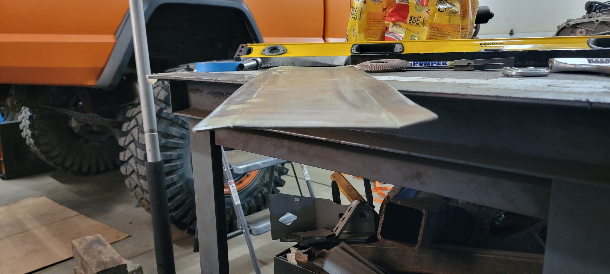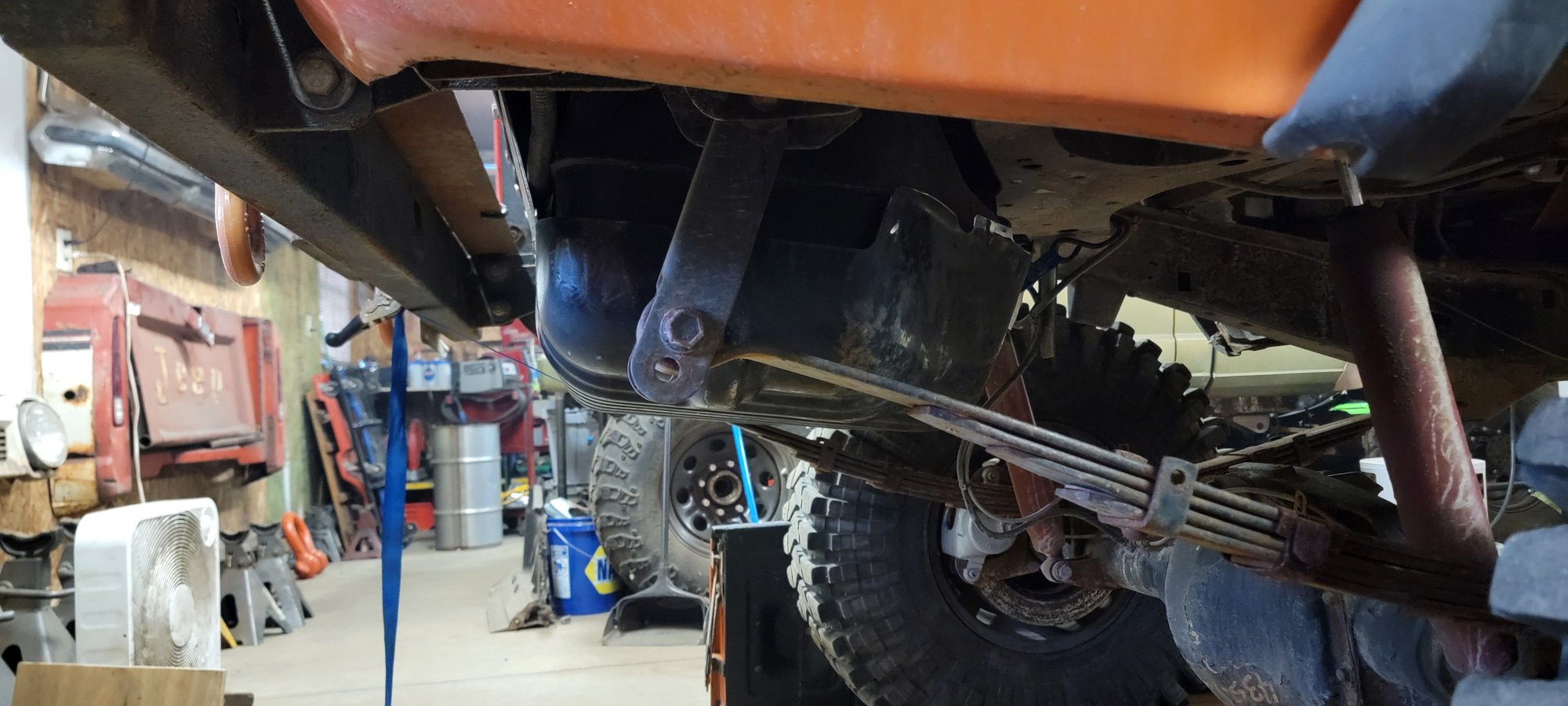 Started off with some adjusting on the rear plate I welded to the skid plate. Essentially tally hammering it back to straight. Then leveled the tank to then start on the front mounts