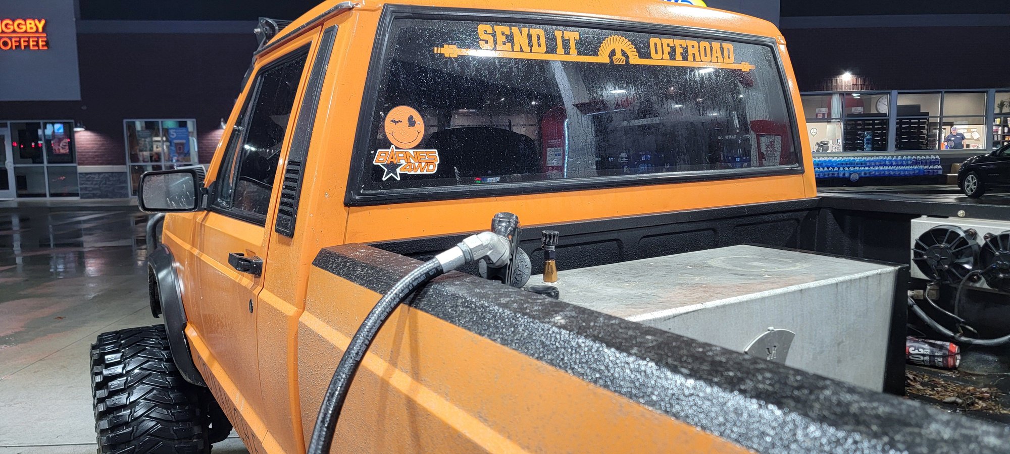 There are 3 things in this picture that im finally going to address and change. The rear window has long been on my list to be swapped out with a 3 piece slider. This fuel cell needs to go in favor of more bed space and also the ability to refuel with ease when I have a topper on the truck. Lastly while I'm at it for open bed space I want to relocate/change the trans cooler setup to be at the front of the truck in front of the radiator.