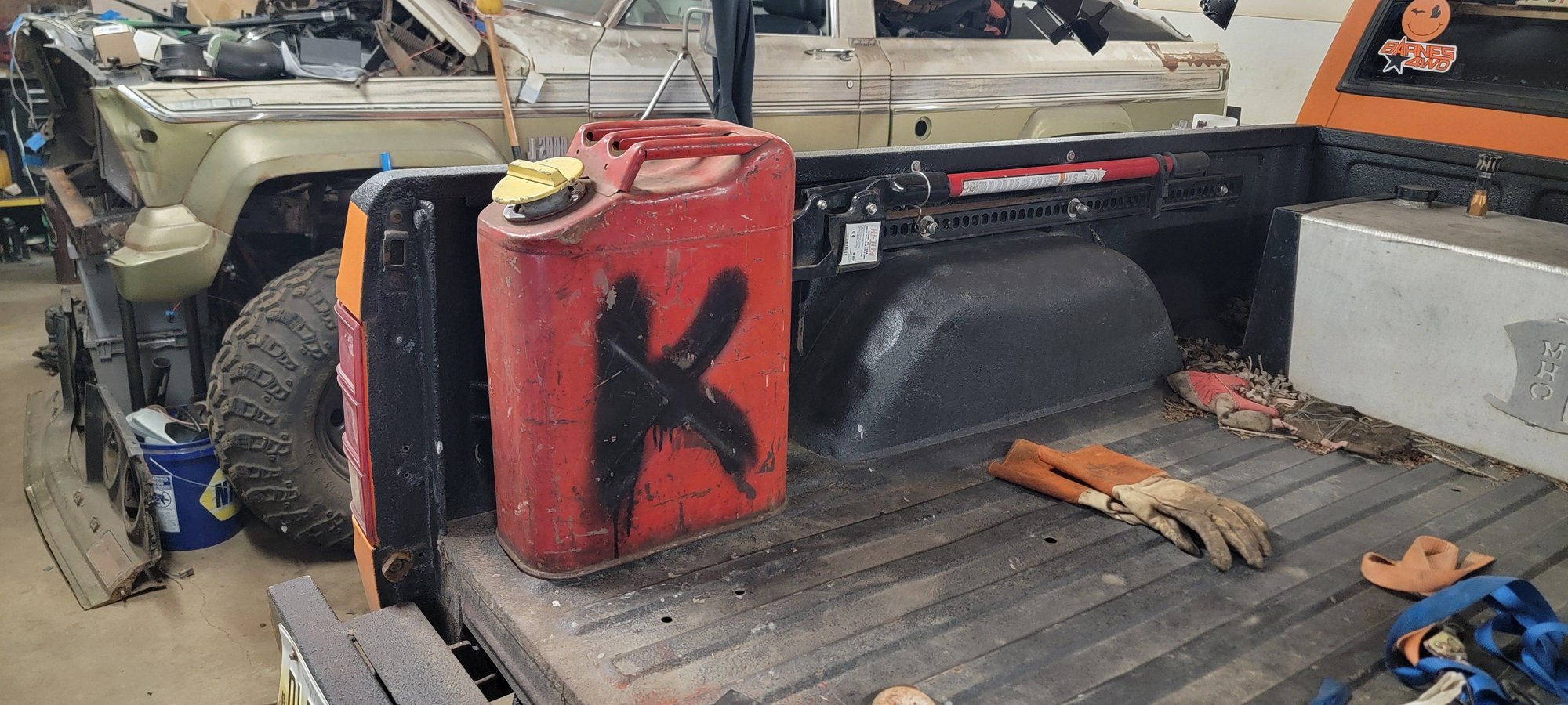 Onto the fuel filler setup, old jerry can and wouldnt you know it, the tan MJ just keeps on giving! Fuel filler with the old style gas cap to boot!
