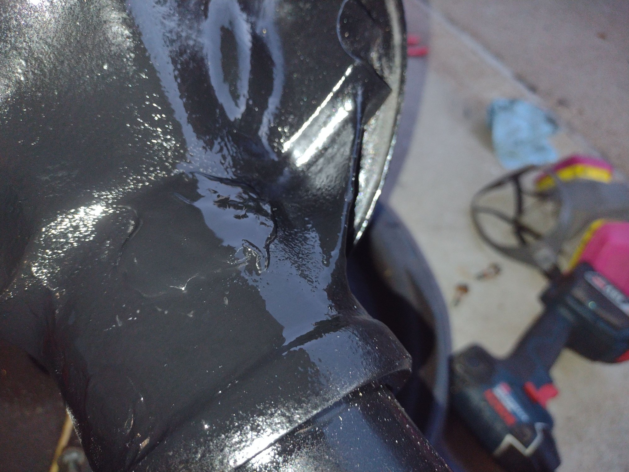 It got a quick touch up Rustoleum over the hardened epoxy this morning, and it's no uglier than the factory's work.