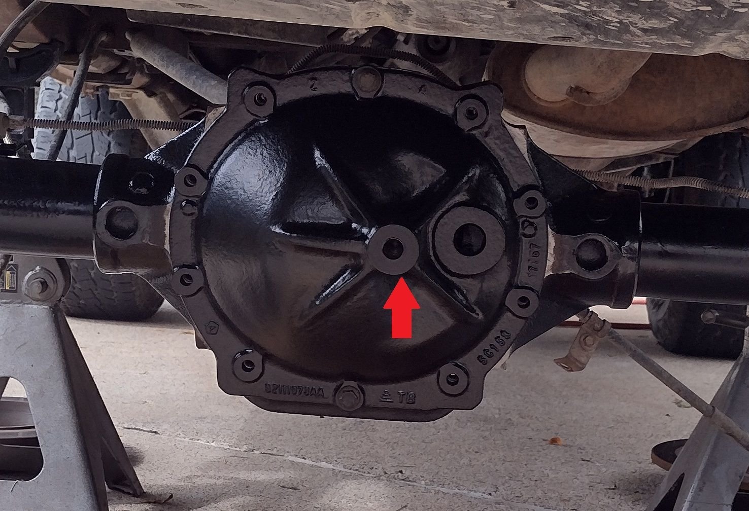 The hole on the diff cover for the Durango's Watts linkage was a massive invitation to bugs and dirt. I knew it would get filled with something soon, might as well make it what it was designed to hold.