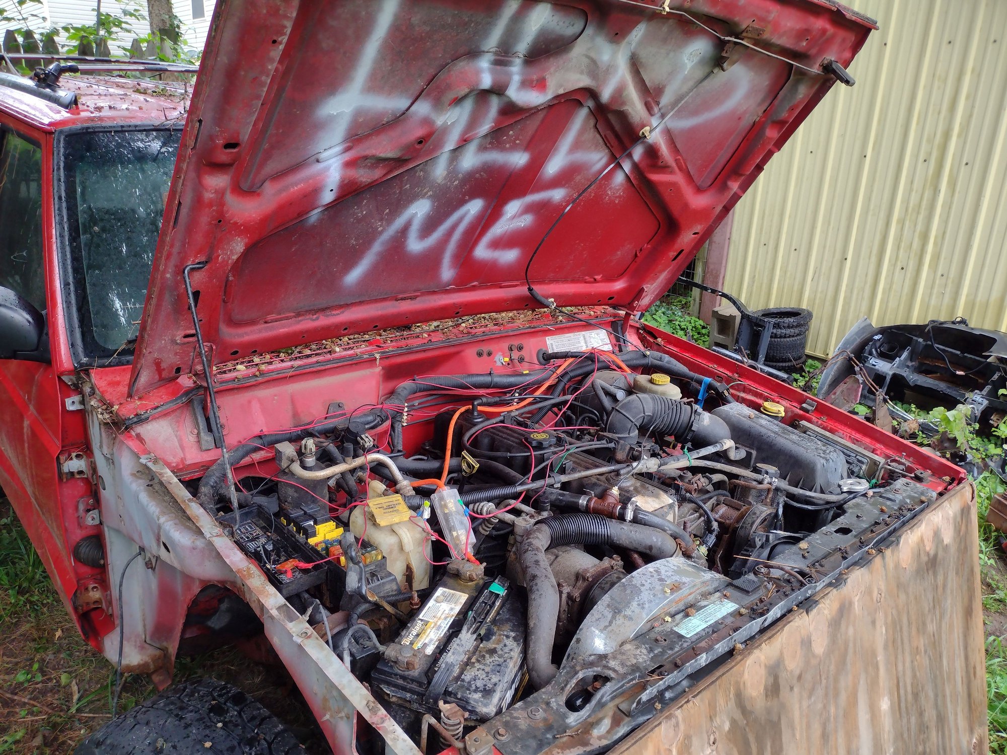 To get a few of the facelift '97+ parts, he bought this absolute pile of a donor for $200. Guy was selling for so cheap because it was so rusty the steering box almost literally fell off, and it is 2wd.